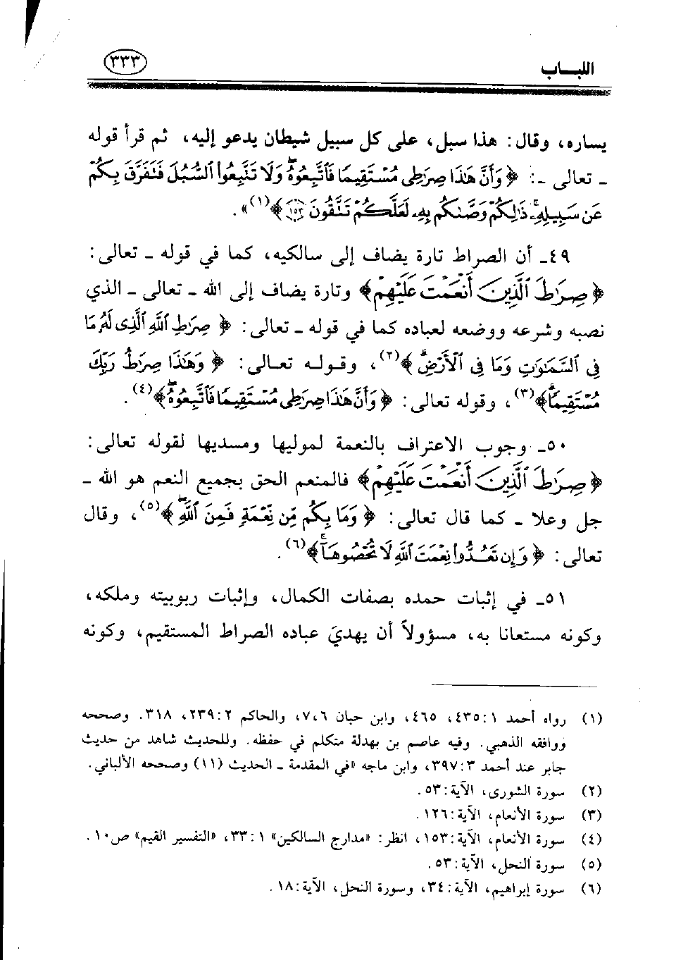 (¬4) سورة الأنعام الآية 153 انظر مدارج السالكين 1:33 التفسير القيم ص10