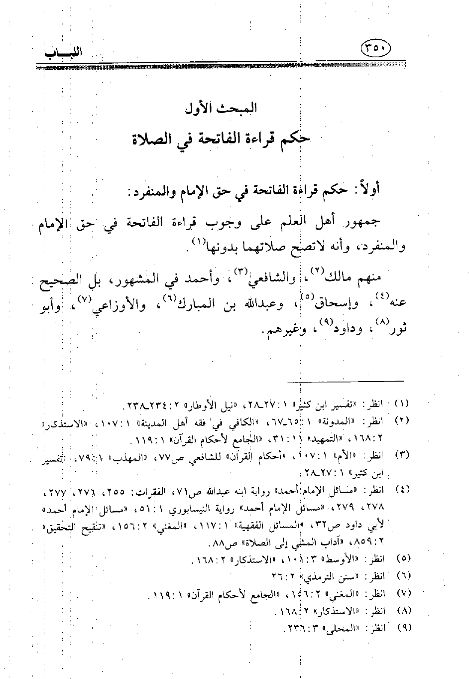 (¬2) انظر: «المدونة» 1: 65 - 67، «الكافي في فقه أهل المدينة» 1: 107، «الاستذكار» 2: 168، «التمهيد» 11: 31، «الجامع لأحكام القرآن» 1: 119.
