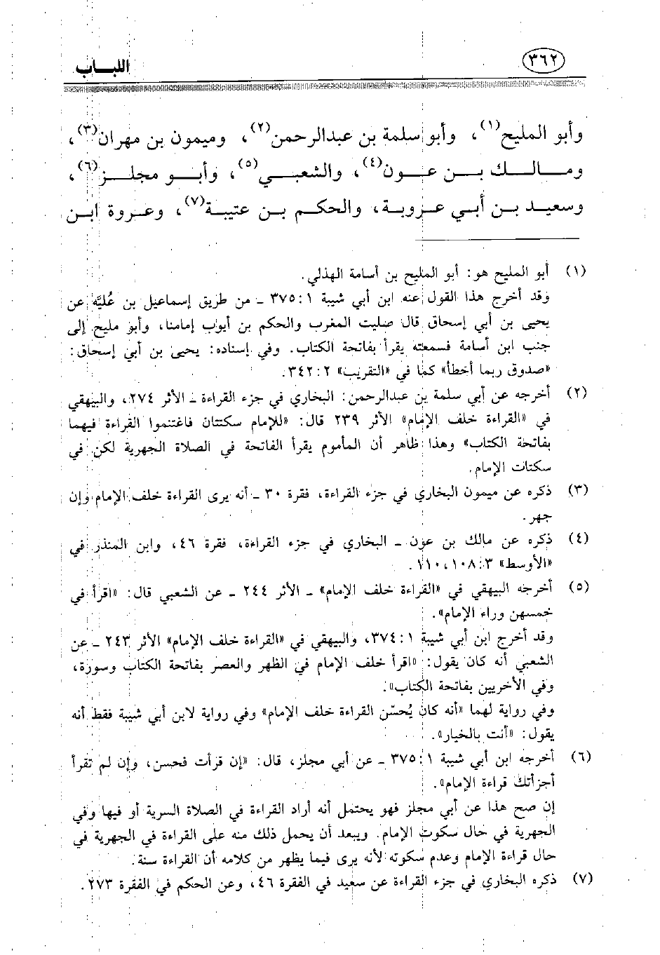 (¬6) أخرجه ابن أبي شيبة 1: 375 - عن أبي مجلز، قال: «إن قرأت فحسن، وإن لم تقرأ أجزأتك قراءة الإمام».