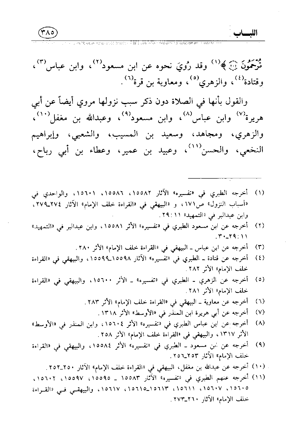 (¬11) أخرجه عنهم الطبري في «تفسيره» الآثار 15583 - 15595، 15597، 15602، 15605، 15607، 15611، 15613، 15615، 15617، والبيهقي في «القراءة خلف الإمام» الآثار 260 - 373.