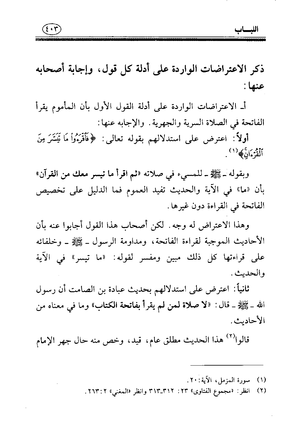 (¬2) انظر: «مجموع الفتاوى» 23: 312 - 313 وانظر «المغني» 2: 263.