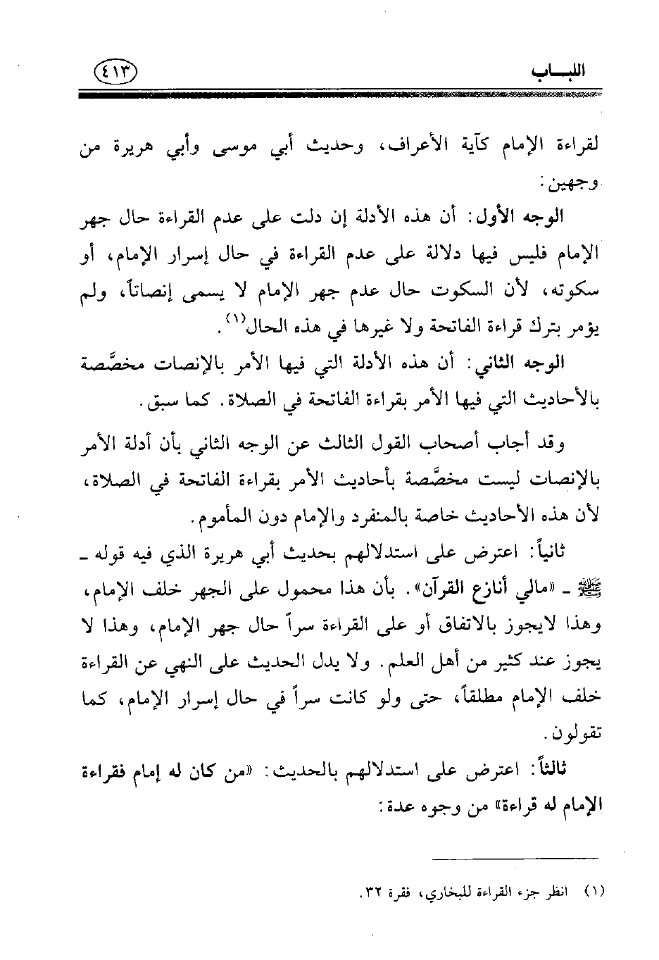 (¬1) انظر جزء القراءة للبخاري، فقرة 32.