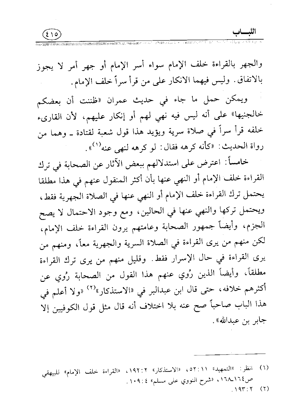 (¬1) انظر: «التمهيد» 11: 52، «الاستذكار» 2: 192، «القراءة خلف الإمام» للبيهقي ص 164 - 168، «شرح النووي على مسلم» 4: 109.