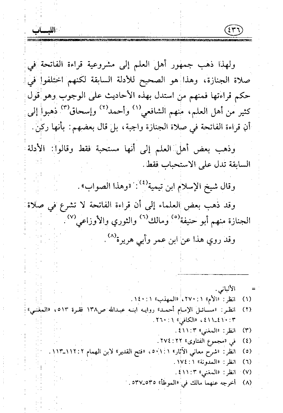 (¬2) انظر: «مسائل الإمام احمد» رواية ابنه عبد الله ص 138 فقرة 513، «المغني» 3: 410 - 411، «الكافي» 1: 260.