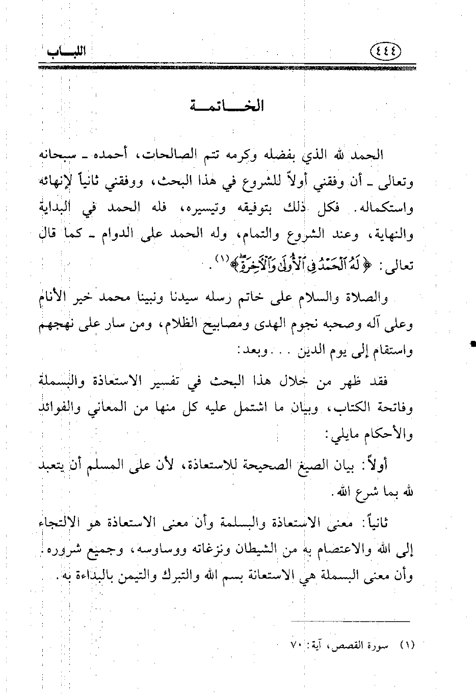 كتاب اللباب في تفسير الاستعاذة والبسملة وفاتحة الكتاب