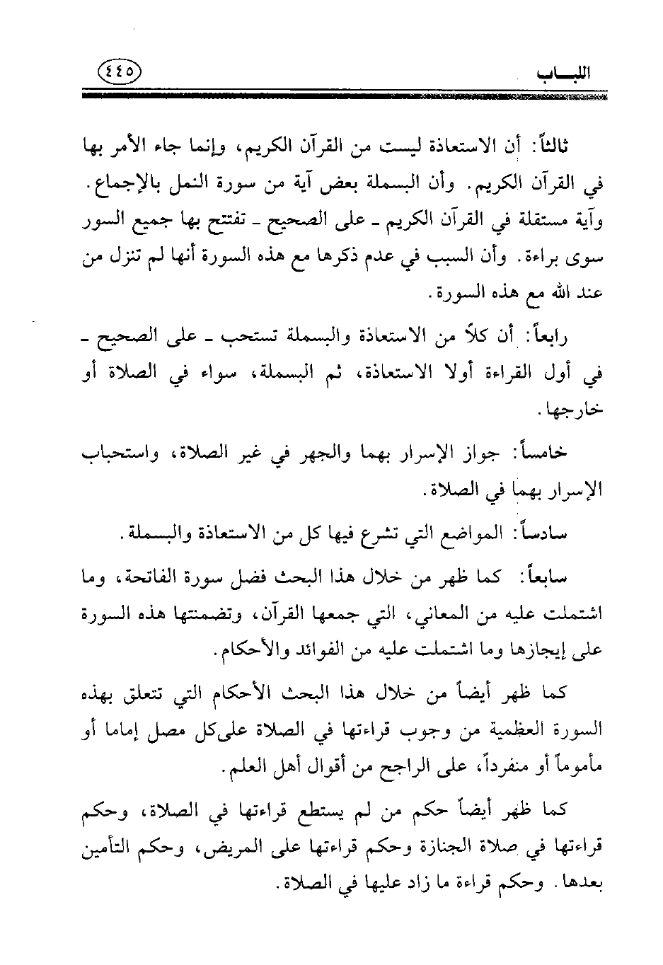 كتاب اللباب في تفسير الاستعاذة والبسملة وفاتحة الكتاب
