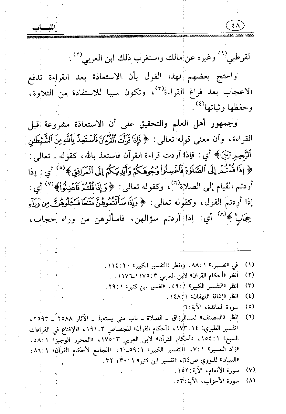 (¬6) انظر «المصنف» لعبد الرزاق- الصلاة- باب متى تستعيذ- الآثار 2588 - 2593، «تفسير الطبري» 173:14، «أحكام القرآن» للجصاص 191:3، «الإقناع في القراءات السبع» 154:1، «أحكام القرآن» لابن العربي 175:3، «المحرر الوجيز» 48:1، «زاد المسير» 7:1، «التفسير الكبير» 59:1 - 60، «الجامع لأحكام القرآن» 86:1، «التبيان» للنووي ص64، «تفسير ابن كثير» 30:1، 32.