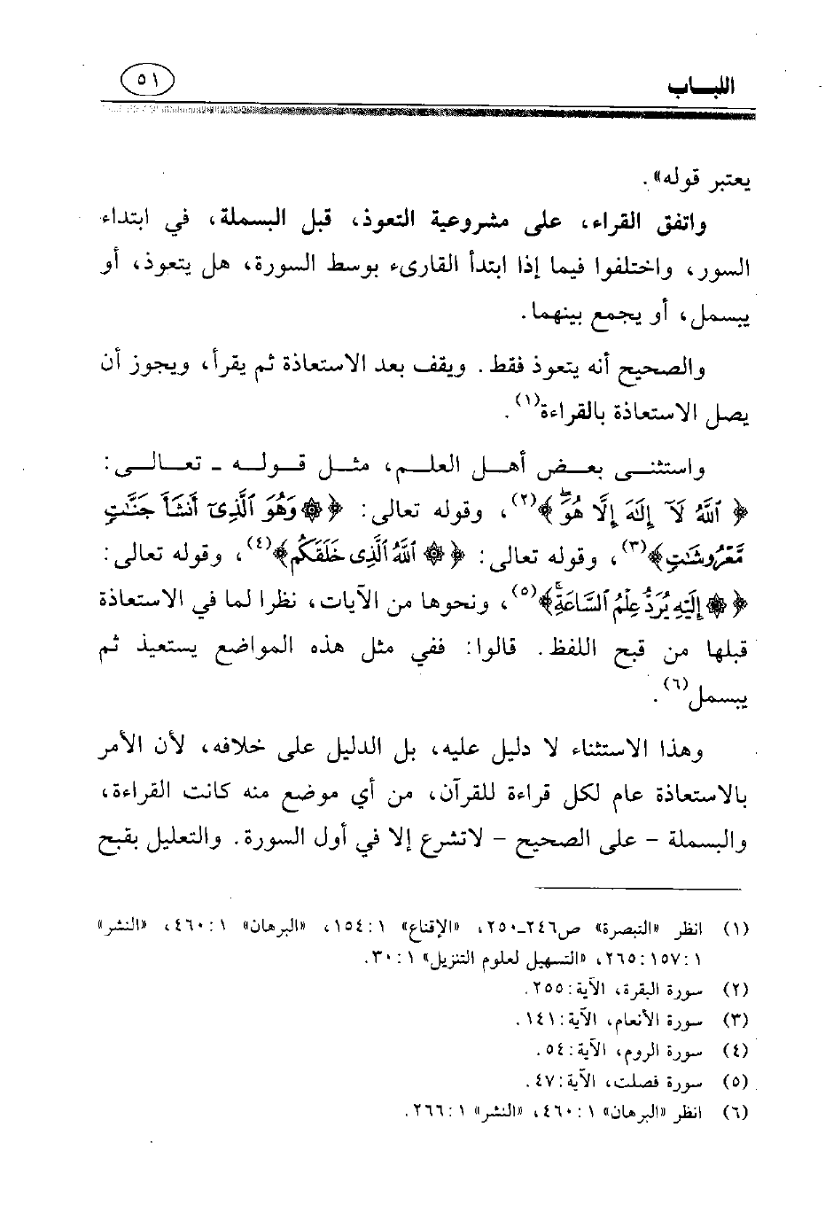 كتاب اللباب في تفسير الاستعاذة والبسملة وفاتحة الكتاب