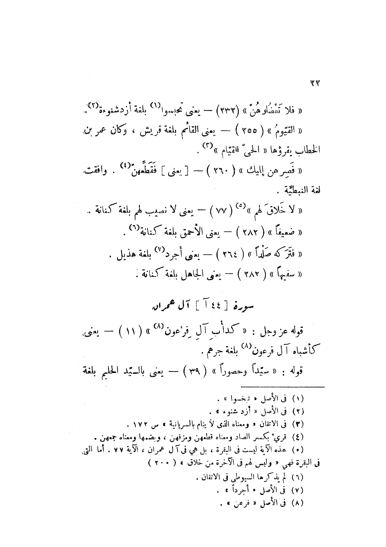 (القَيومُ) - 255 - يعني القائم بلغة قريش، وكان عمر بن الخطاب يقرؤها (الحَيِّ القيّام) .