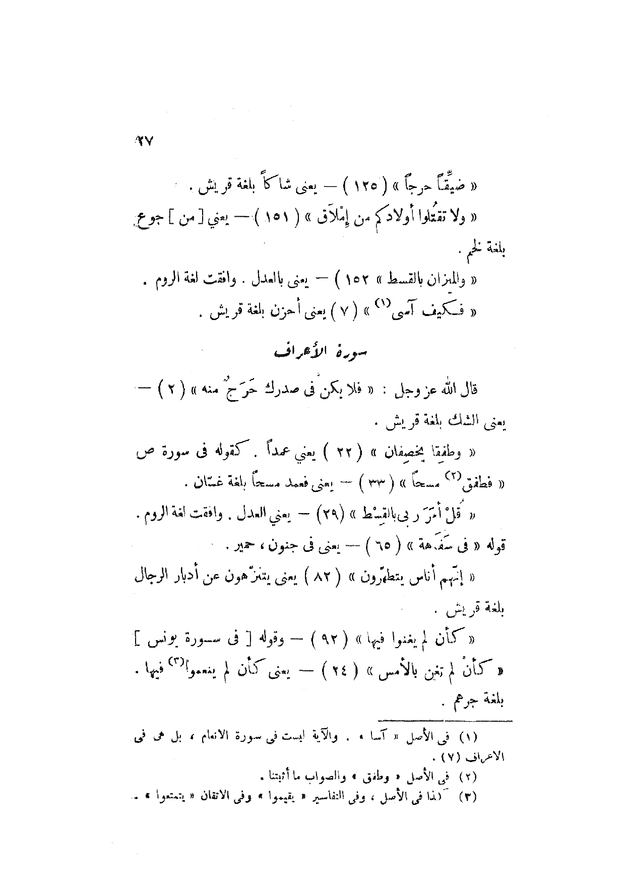 (قُل أَمَرَ رَبي بِالقِسط) - 29 - يعني العدل. وافقت لغة الروم.