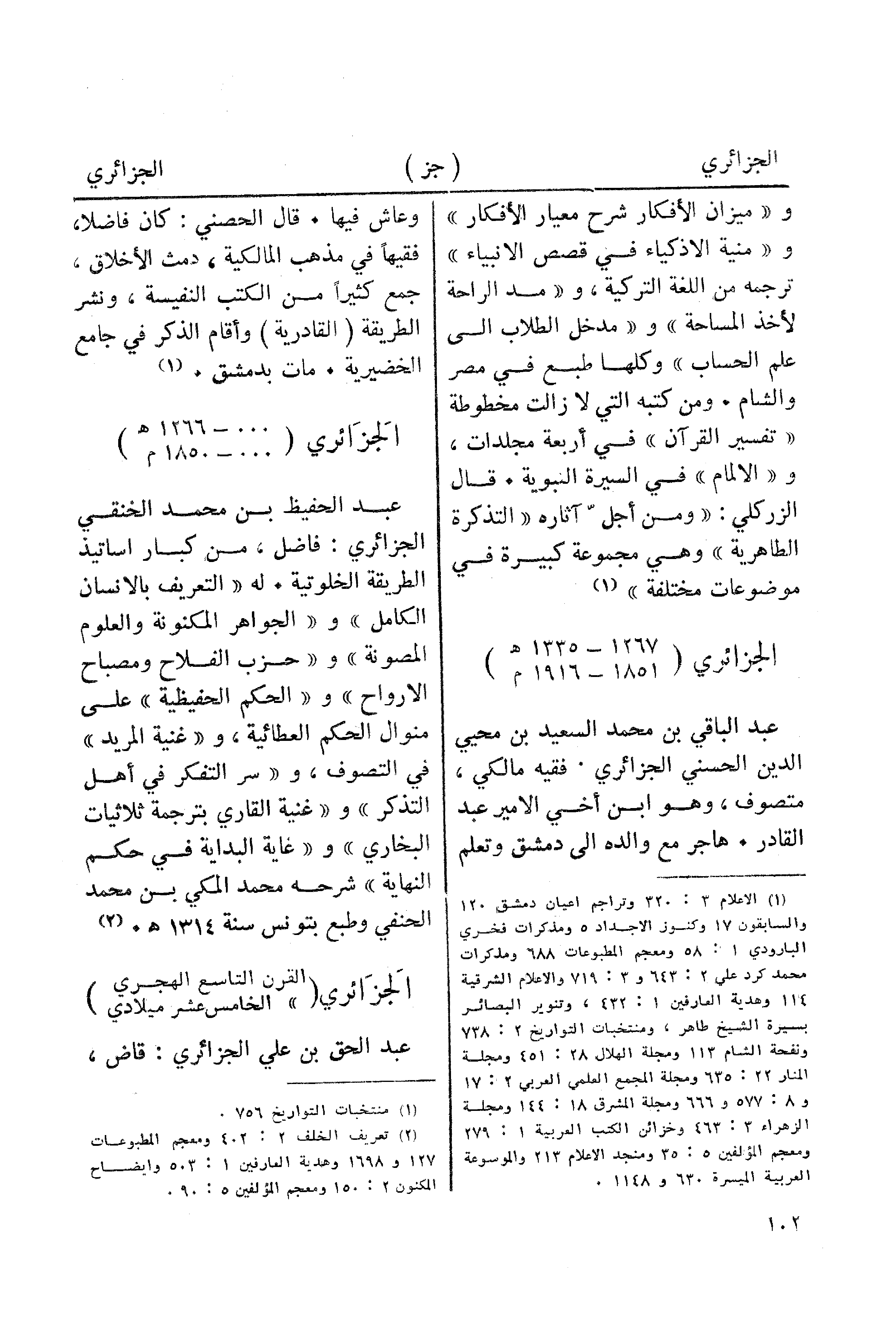 (¬1) الاعلام 3: 320 وتراجم اعيان دمشق 120 والسابقون 17 وكنوز الاجداد 5 ومذكرات فخري البارودي 1: 58 ومعجم المطبوعات 688 ومذكرات محمد كرد علي 2: 643 و 3: 719 والاعلام الشرقية 114 وهدية العارفين 1: 432 وتنوير البصائر بسيرة الشيخ طاهر، ومنتخبات التواريخ 2: 738 ونفحة الشام 113 ومجلة الهلال 28: 451 ومجلة المنار 22: 635 ومجلة المجمع العلمي العربي 2: 17 و 8: 577 و 666 ومجلة المشرق 18: 144 ومجلة الزهراء3: 463 وخزانن الكتب العربية 1: 279 ومعجم المؤلفين 5: 35 ومنجد الاعلام 213 والموسوعة العربية الميسرة 630 و 1148.