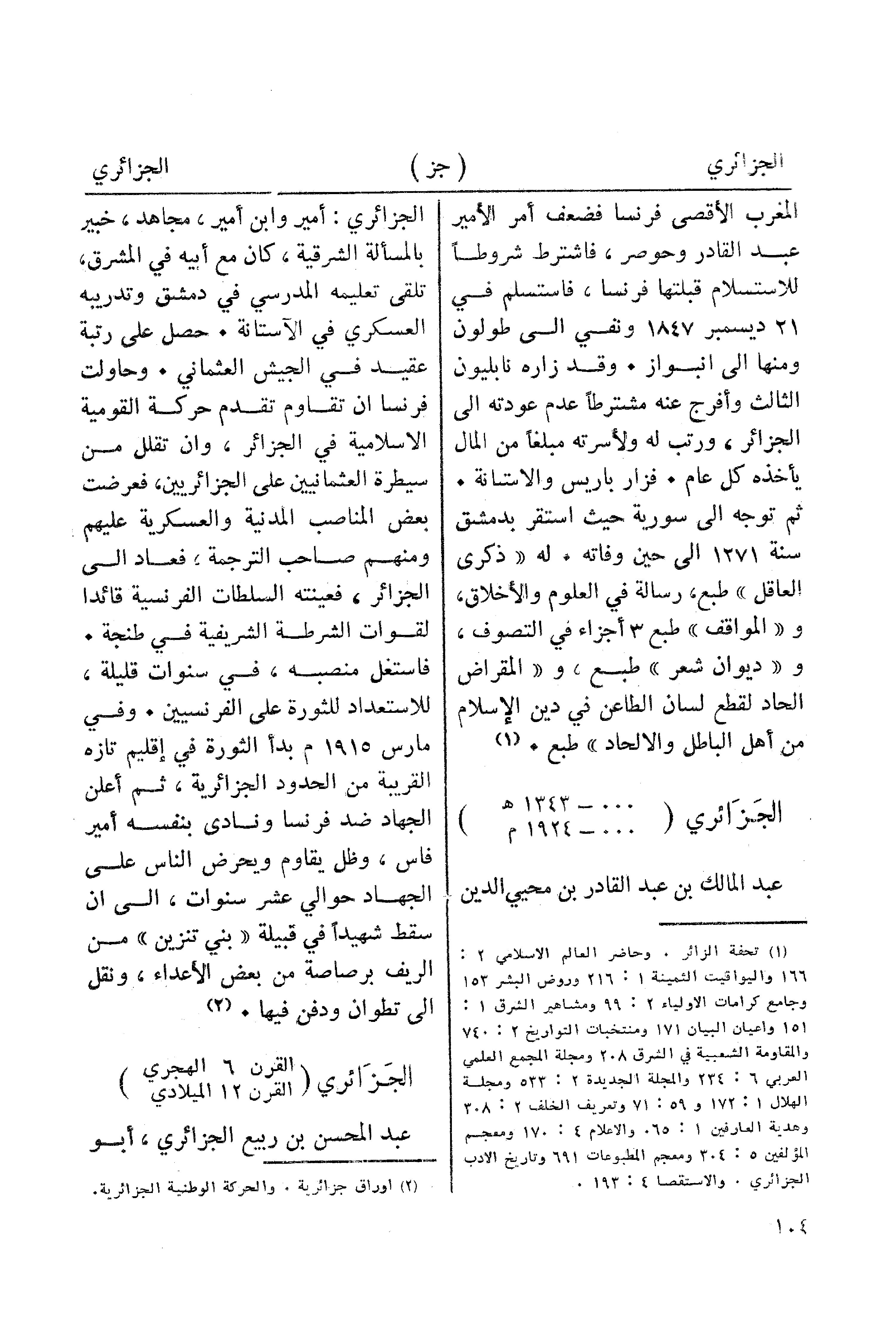 (¬1) تحفة الزائر. وحاضر العالم الاسلامي 2: 166 واليواقيت الثمينة 1: 216 وروض البشر 153 وجامع كرامات الأولياء 2: 99 ومشاهير الشرق 1: 151 واعيان البيان 171 ومنتخبات التواريخ 2: 740 والمقاومة الشعبية في الشرق 208 ومجلة المجمع العلمي العربى 6: 234 والمجلة الجديدة 2: 522 ومجلة الهلال 1: 172 و 59: 71 وتعريف الخلف 2: 308 وهدية العارفين 1: 63. والاعلام 4: 170 ومعجم المؤلفين 5: 304 ومعجم المطبوعات 691 وتاريخ الادب الجزائري. والاستقصا 4: 193.