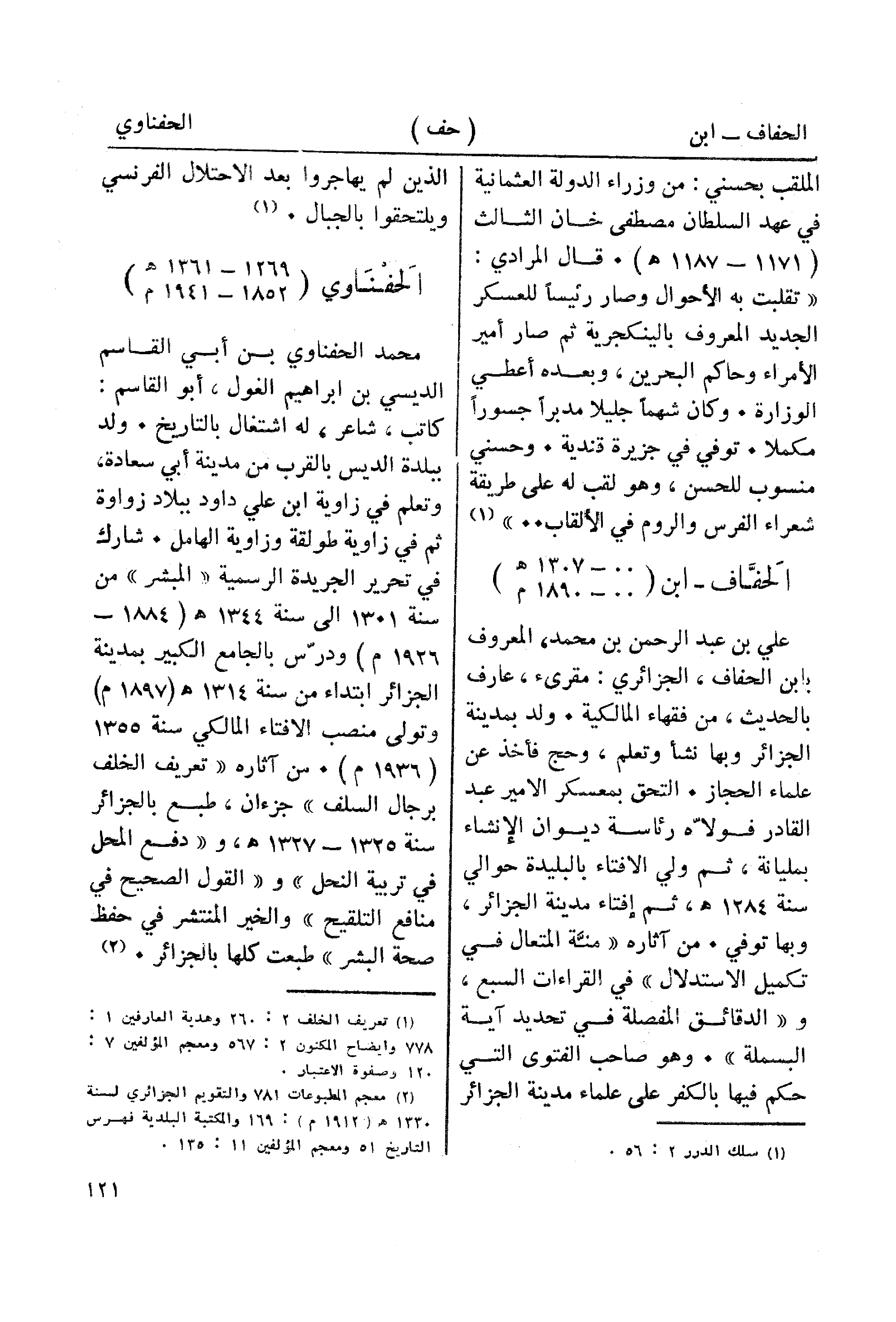 (¬2) معجم المطبوعات 781 والتقويم الجزائري لسنة 1330هـ (1912م): 169 والمكتبة البلدية فهرس التاريخ 51 ومعجم المؤلفين 11: 135.