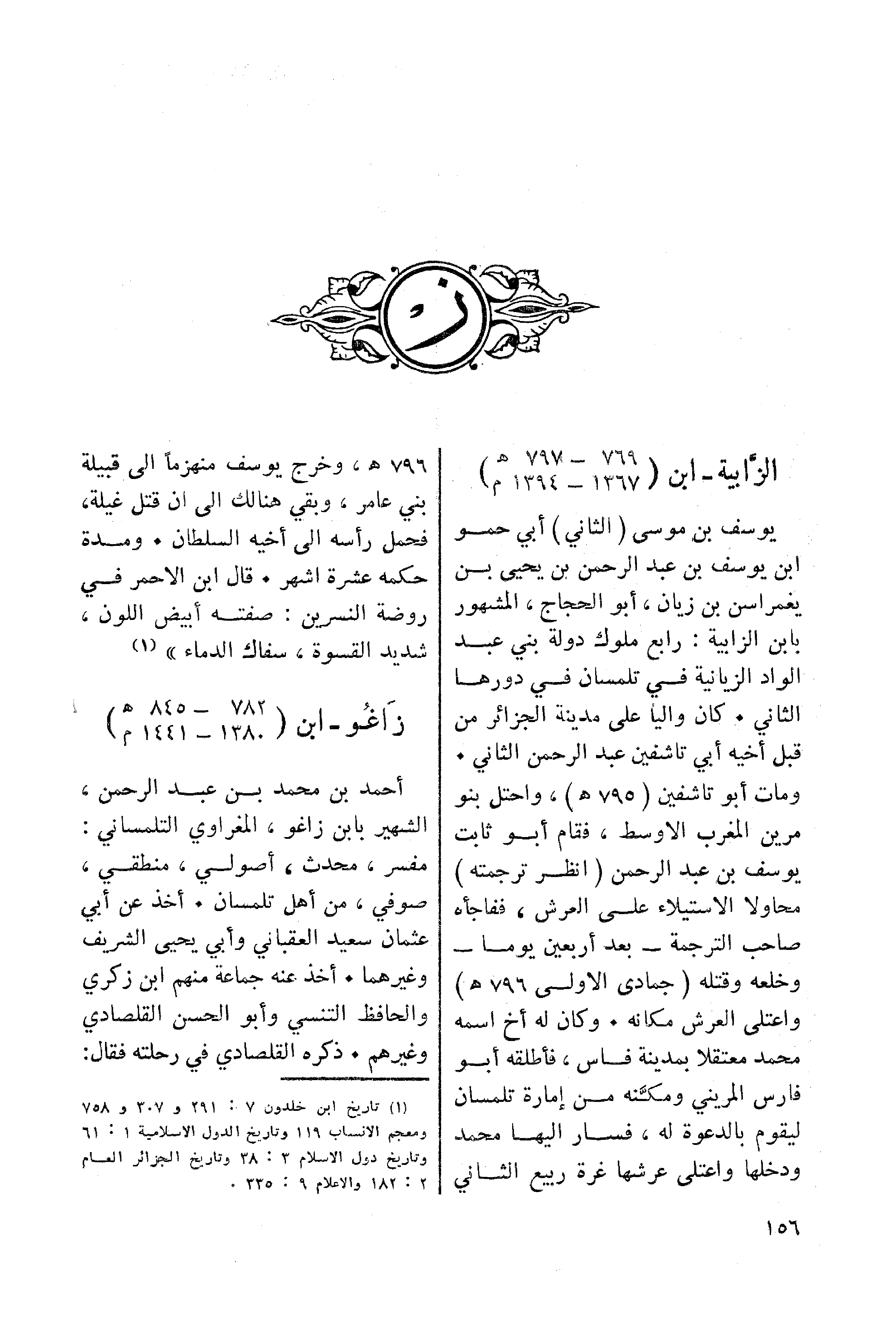 (¬1) تاريخ ابن خلدون 7: 291 و 307 و 758 ومعجم الانساب 119 وتاريخ الدول الإسلامية 1: 61 وتاريخ دول الإسلام 3: 38 وتاريخ الجزائر العام 2: 182 والاعلام 9: 335.