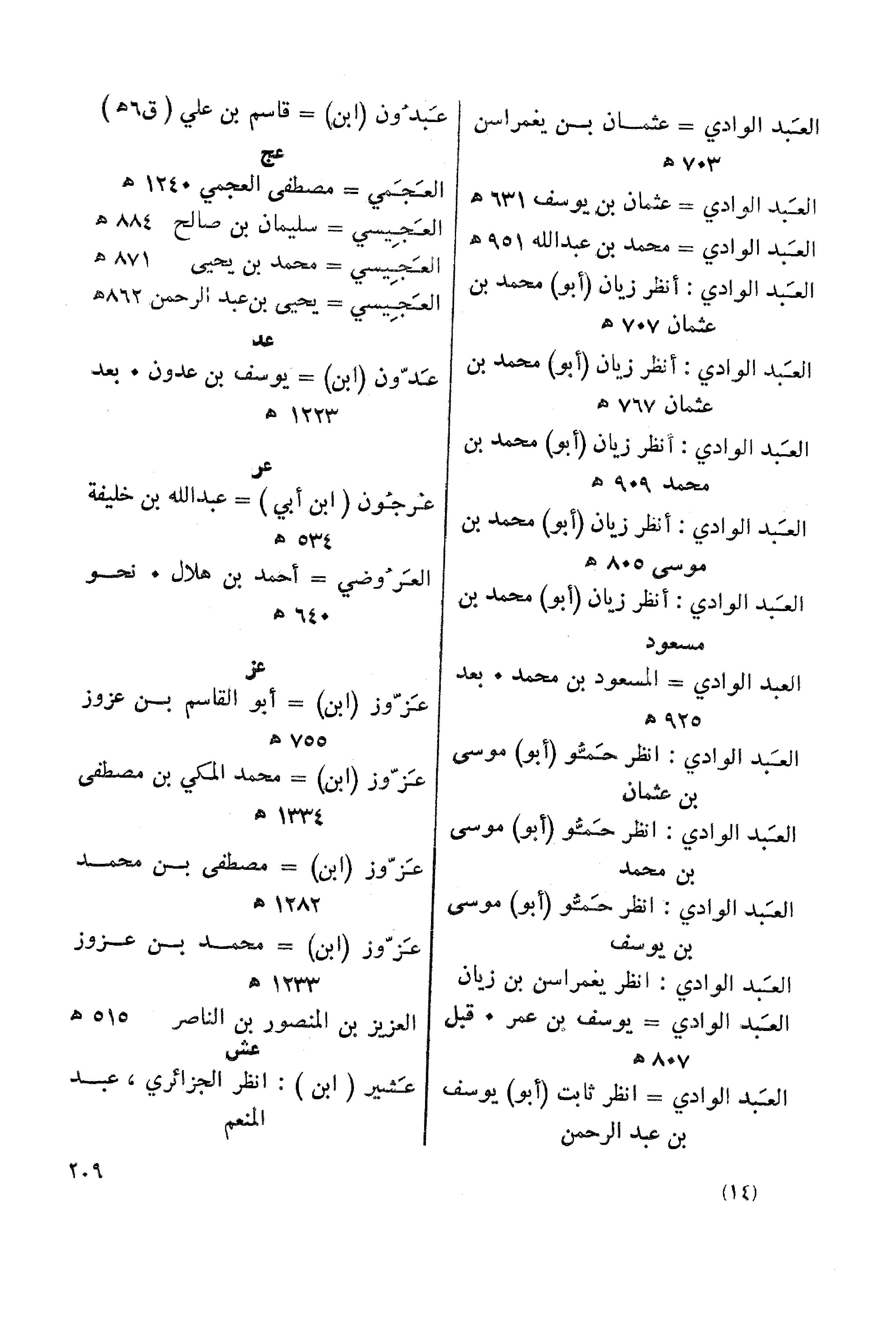 العبد الوادي: أنظر زيان (أبو) محمد بن عثمان 767 هـ