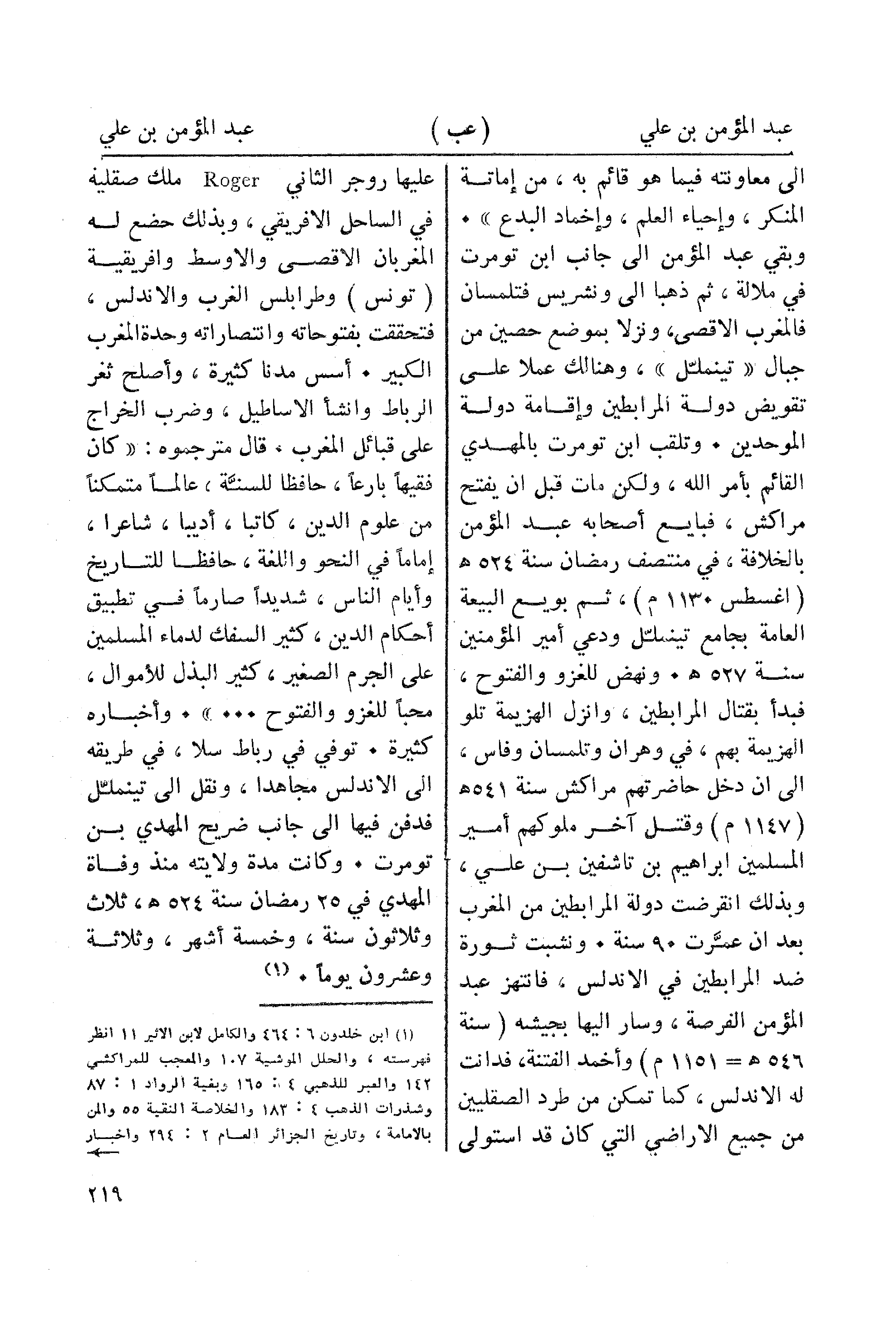 (¬1) ابن خلدون 6: 464 والكامل لابن الاثير 11 انظر فهرسته، والحلل الموشية 107 والمعجب للمراكشي 142 والعبر للذهبي 1: 165 وبغية الرواد 1: 87 وشذرات الذهب 4: 182 والخلاصة النقية 55 والمن بالامامة، وتريخ الجزائر العام 2: 294 وأخبار