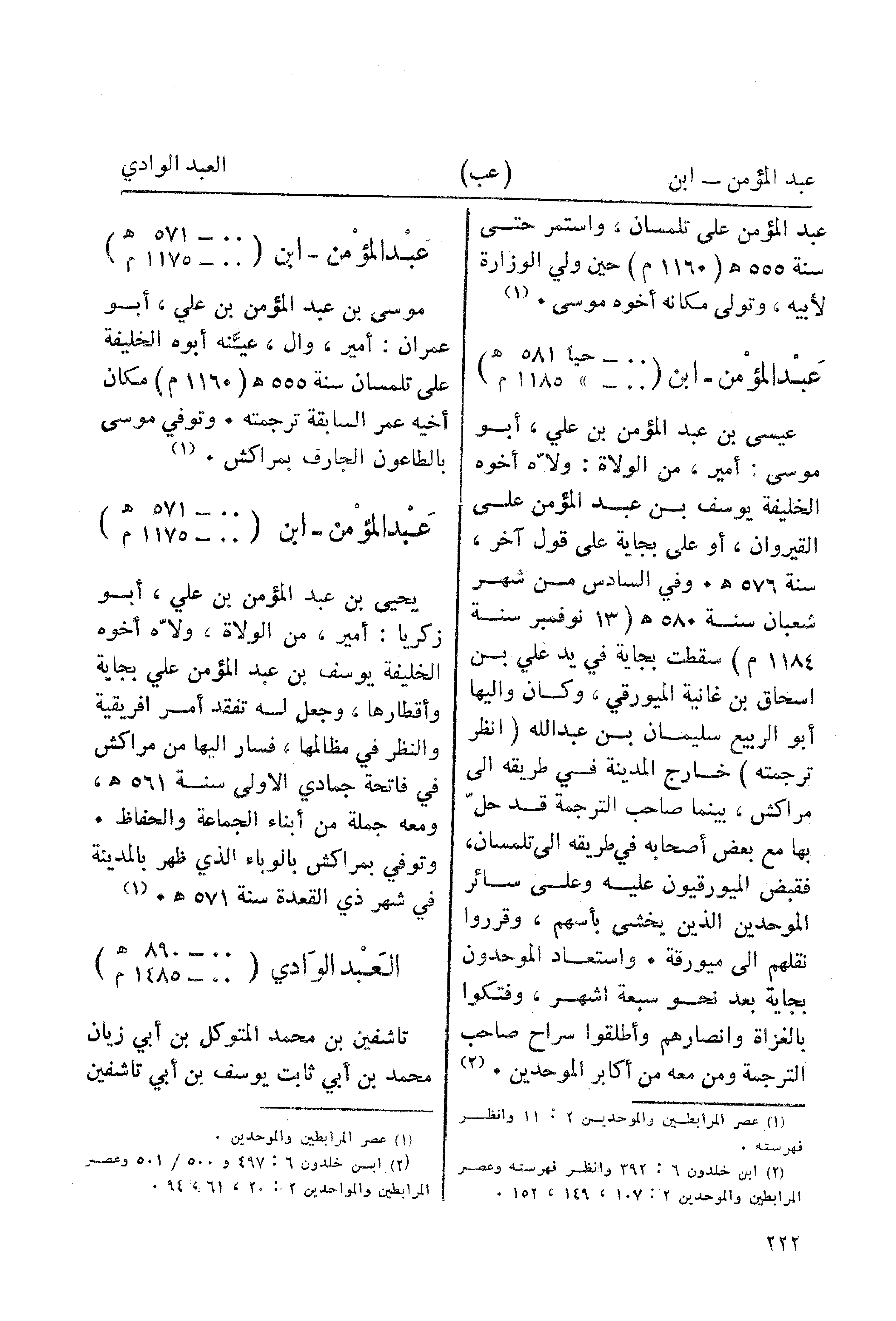 (¬2) ابن خلدون 6: 392 وانظر فهرسته وعصر المرابطين والموحدين 2: 107، 149، 152.