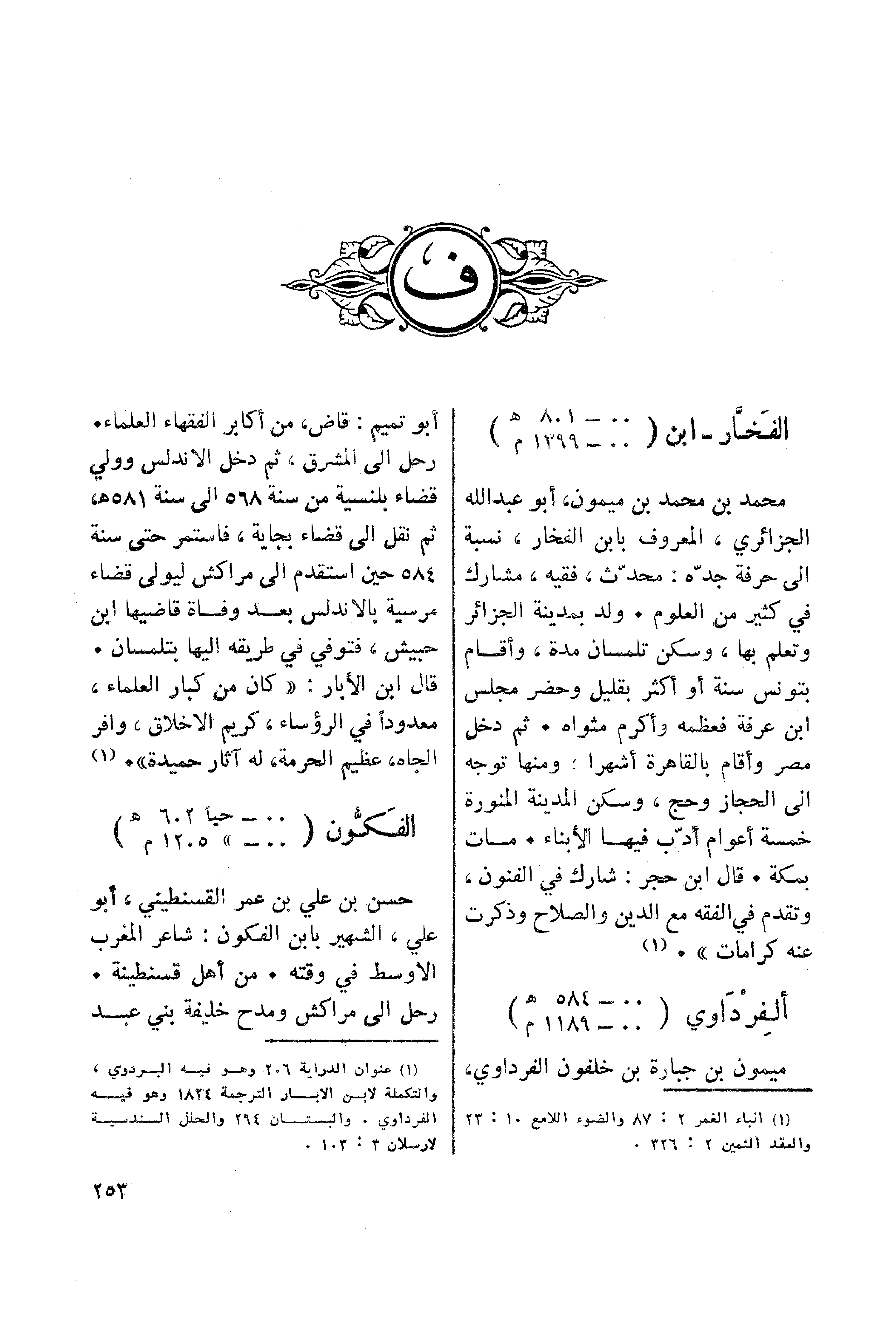 (¬1) عنوان الدراية 206 وهو فيه البردوي، والتكملة لابن الابار الترجمة 1824 وهو فيه الفرداوي. والبستان 294 والحلل السندسية لارسلان 3: 103.