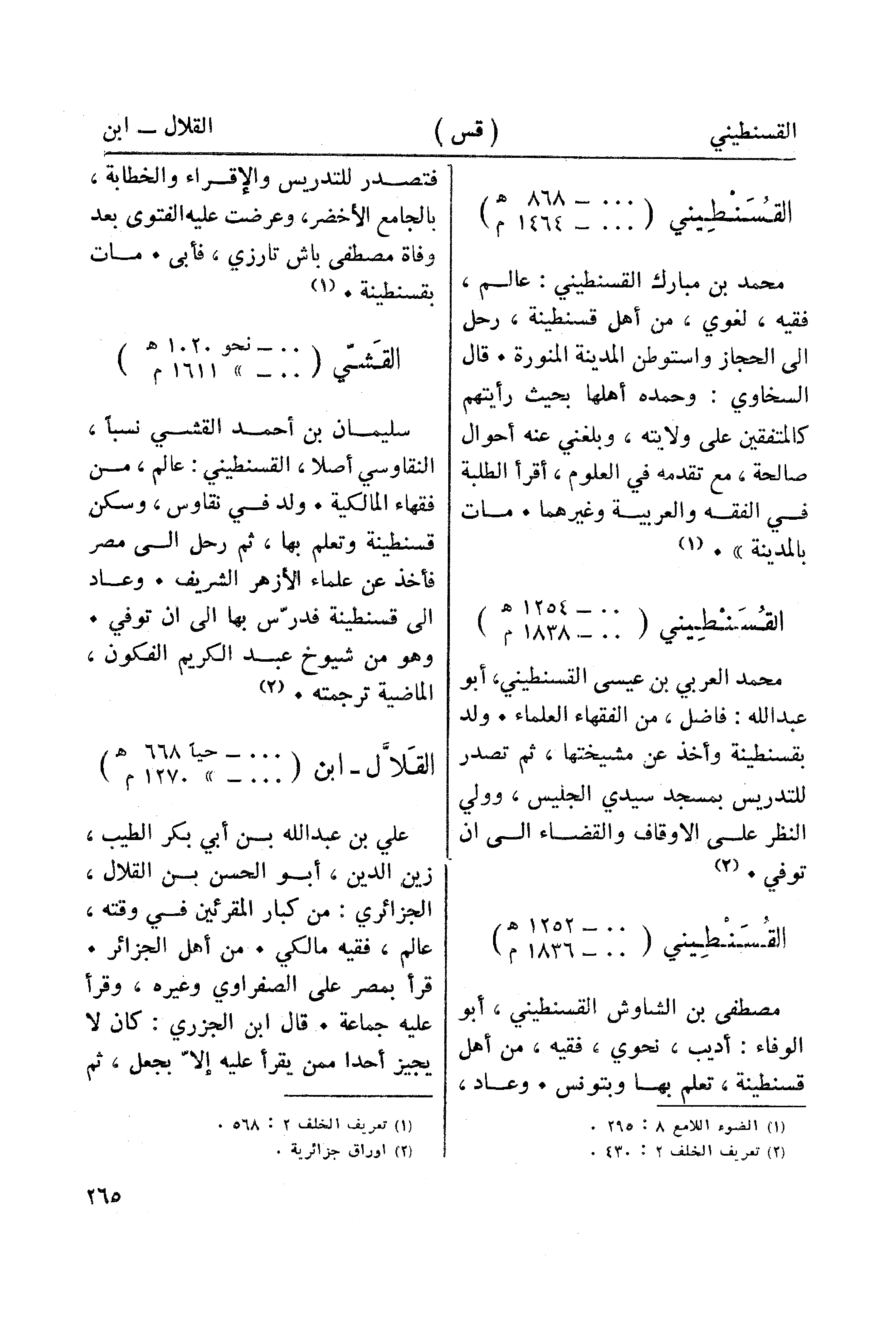 محمد بن مبارك القسنطيني: عالم، فقيه، لغوي، من أهل قسنطينة، رحل الى الحجاز واستوطن المدينة المنورة. قال السخاوي: وحمده أهلها بحيث رأيتهم كالمتفقين على ولايته، وبلغني عنه أحوال صالحة، مع تقدمه في العلوم، أقرأ الطلبة في الفقه والعربية وغيرهما. مات بالمدينة". (¬1)