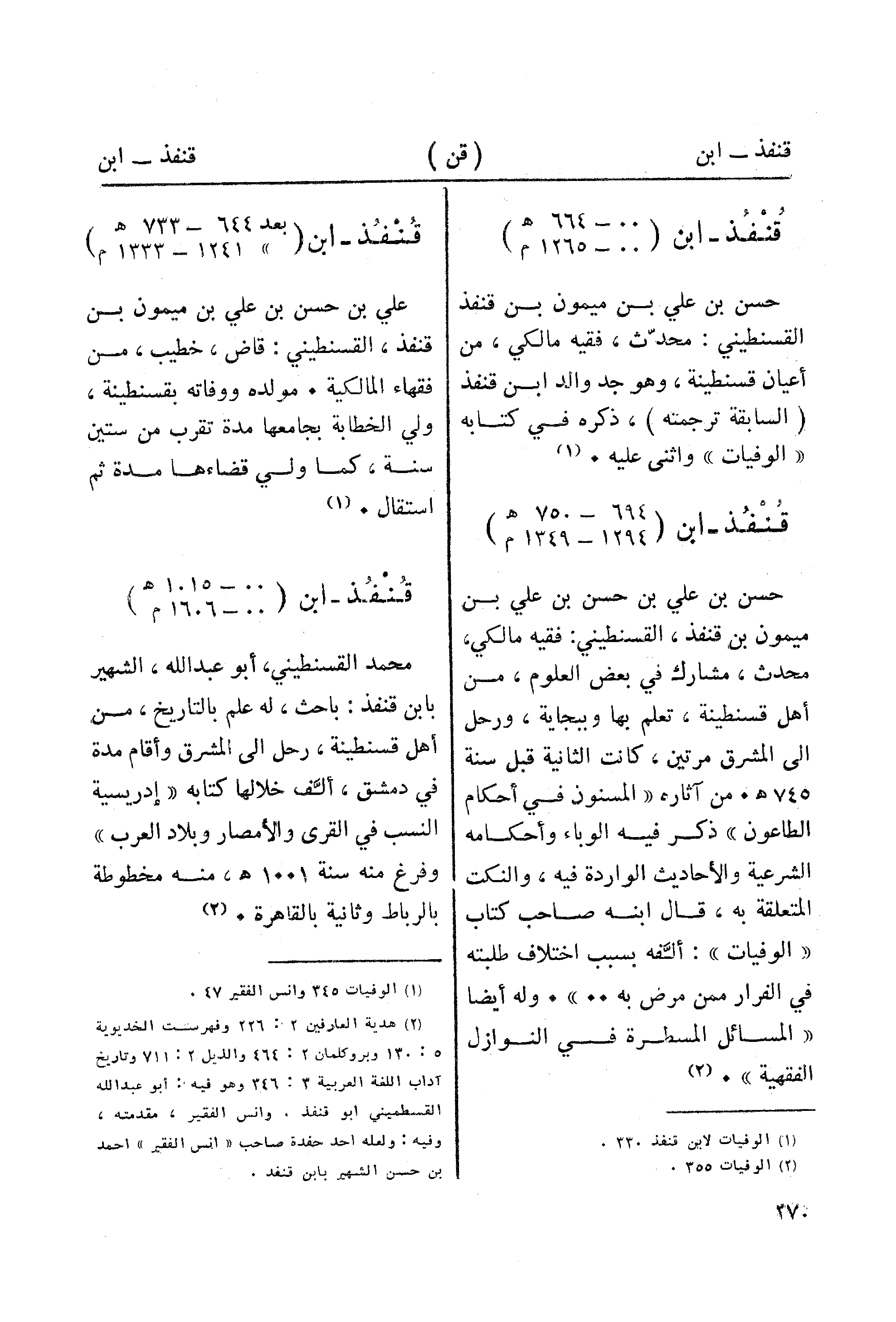 (¬1) الوفيات لابن قنفذ 330.