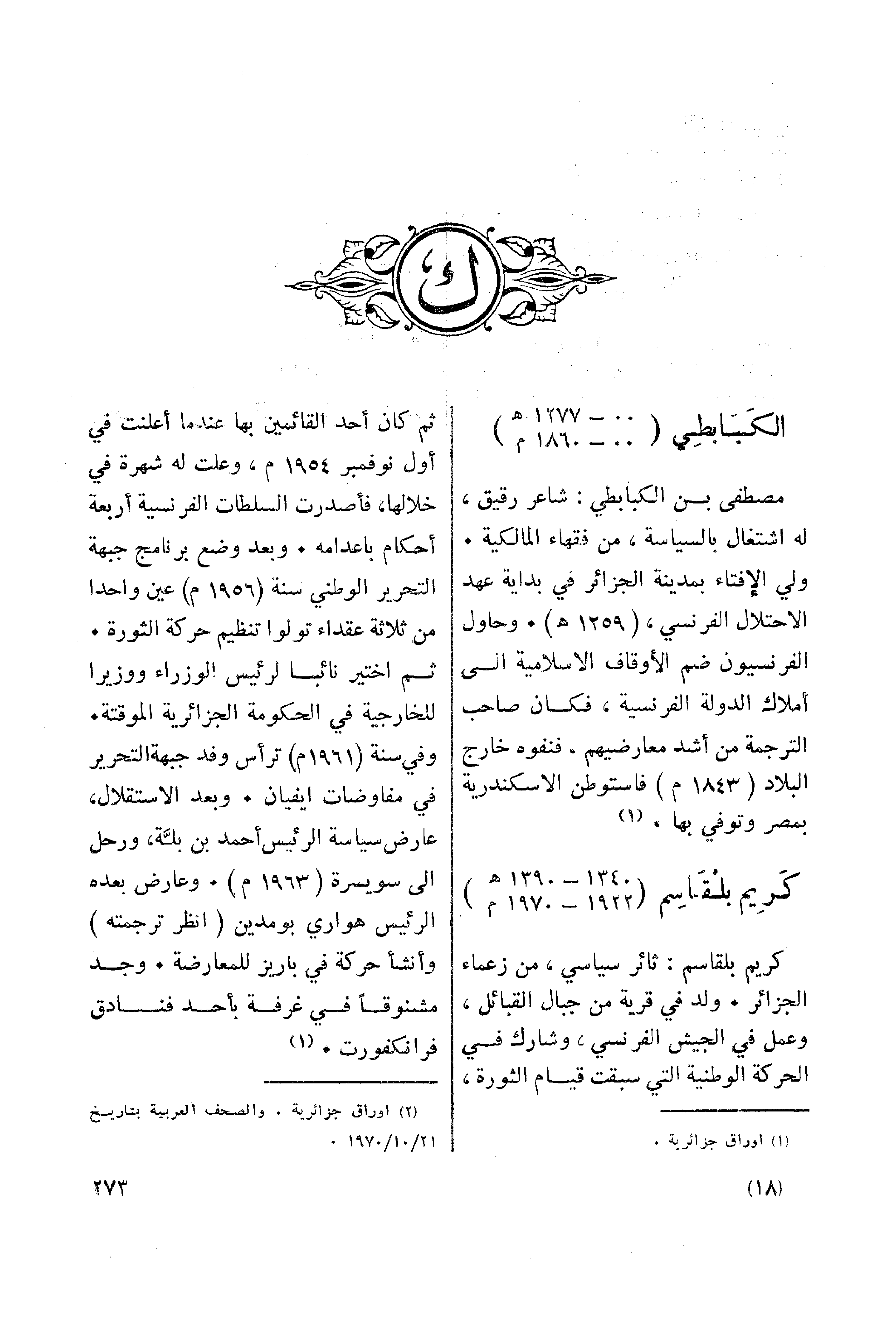 (¬1) أوراق جزائرية. والصحف العربية بتاريخ 21/ 10/ 1970.