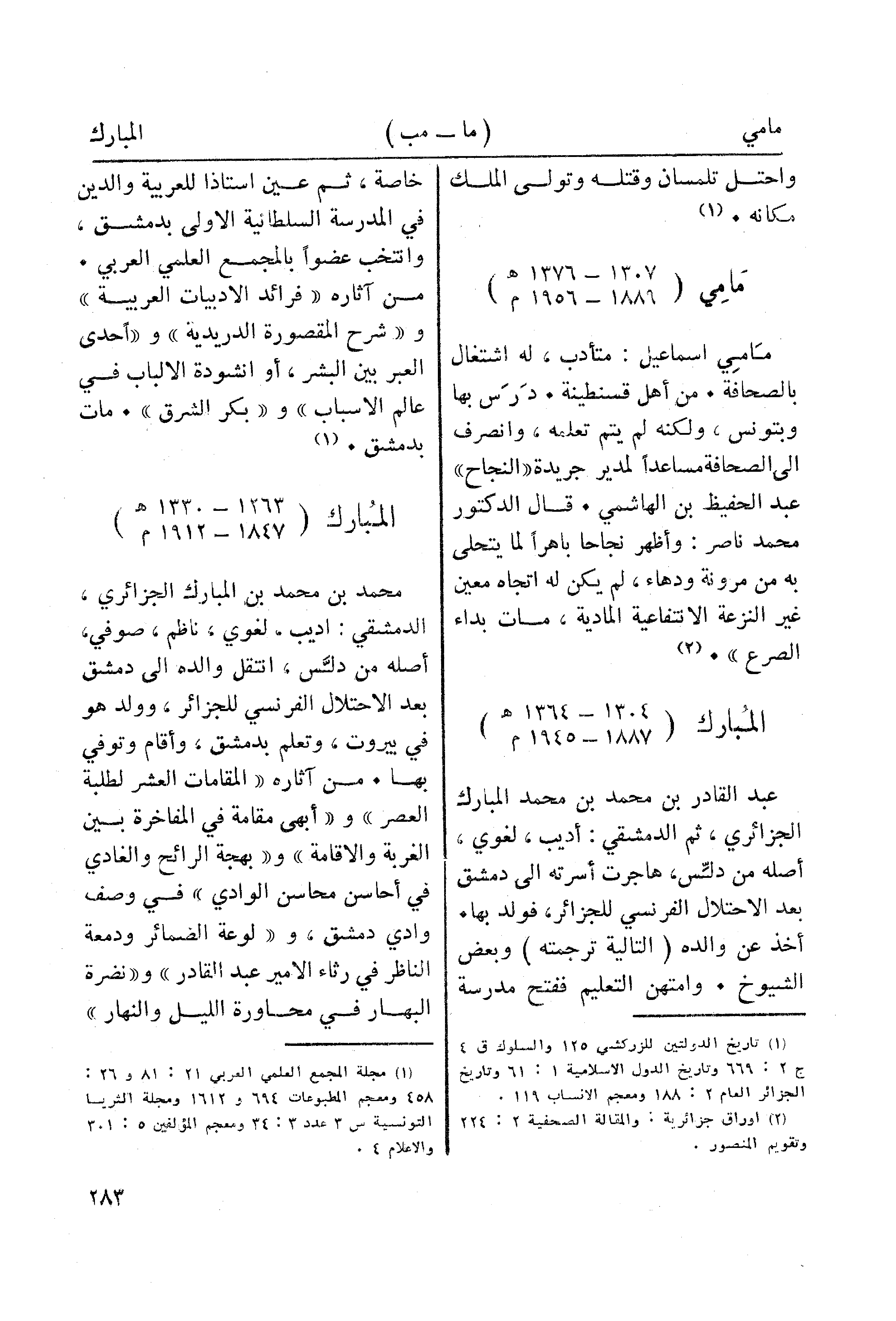 (¬1) مجلة المجمع العلمي العربي 21: 81 و 26: 58، ومعجم المطبوعات 694 و1612 ومجلة الثريا التونسية س 3 عدد 3: 34 ومعجم المؤلفين 5: 301 والاعلام 4.