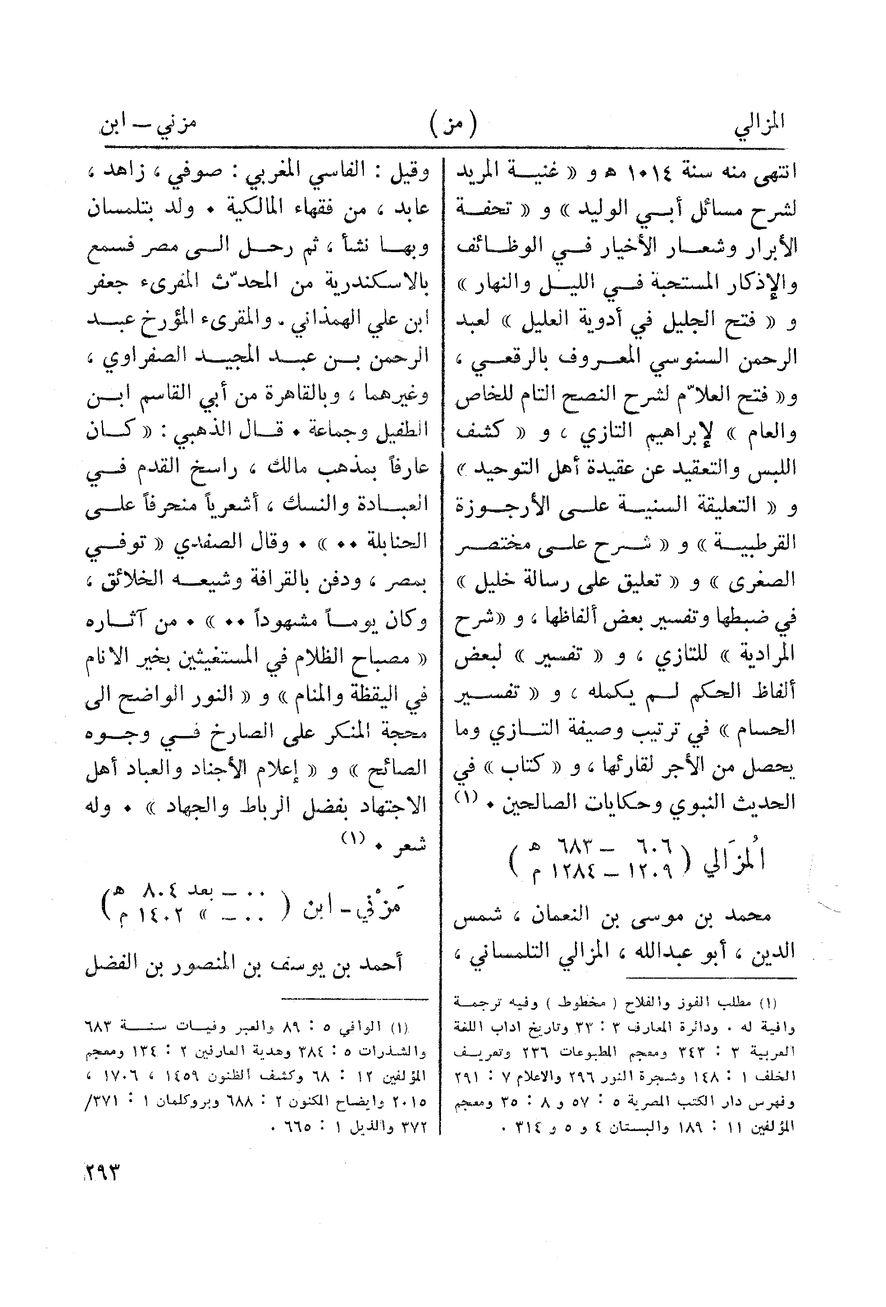 (¬1) مطلب الفوز والفلاح (مخطوط) وفيه ترجمة وافية له. ودائرة المعارف 3: 33 وتاريخ اداب اللغة العربية 3: 343 ومعجم المطبوعات 236 وتعريف الخلف 1: 138 وشجرة النور 296 والاعلام 7: 291 وفهرس دار الكتب المصرية 5: 57 و 8: 35 ومعجم المؤلفين 11: 189 والبسان 4 و 5 و314.