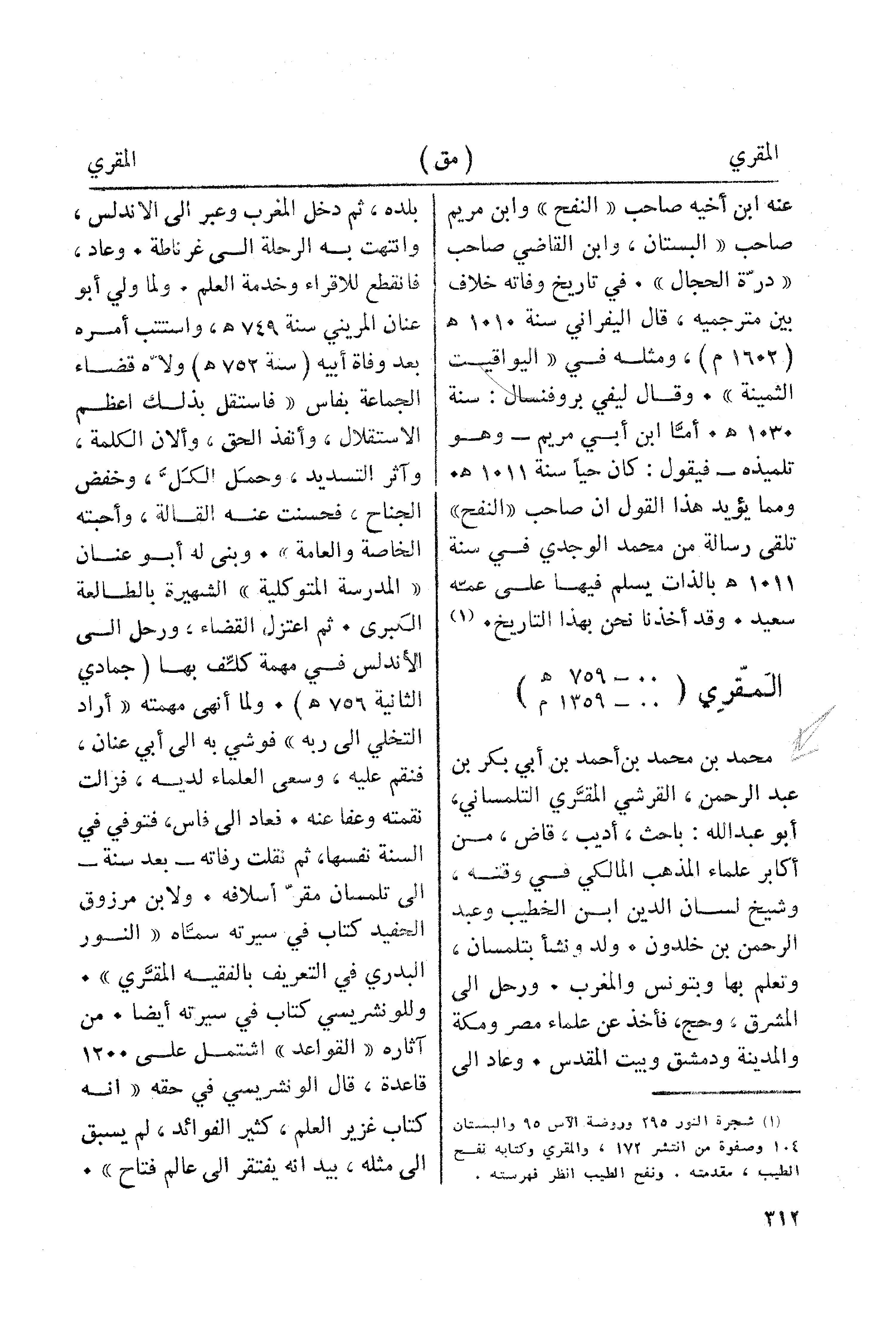 (¬1) شجرة النور 295 وروضة الآس 95 والبستان 104 وصفوة من انتشر 172، والمقري وكتابه نفح الطيب، مقدمته. ونفح الطيب انظر فهرسته.