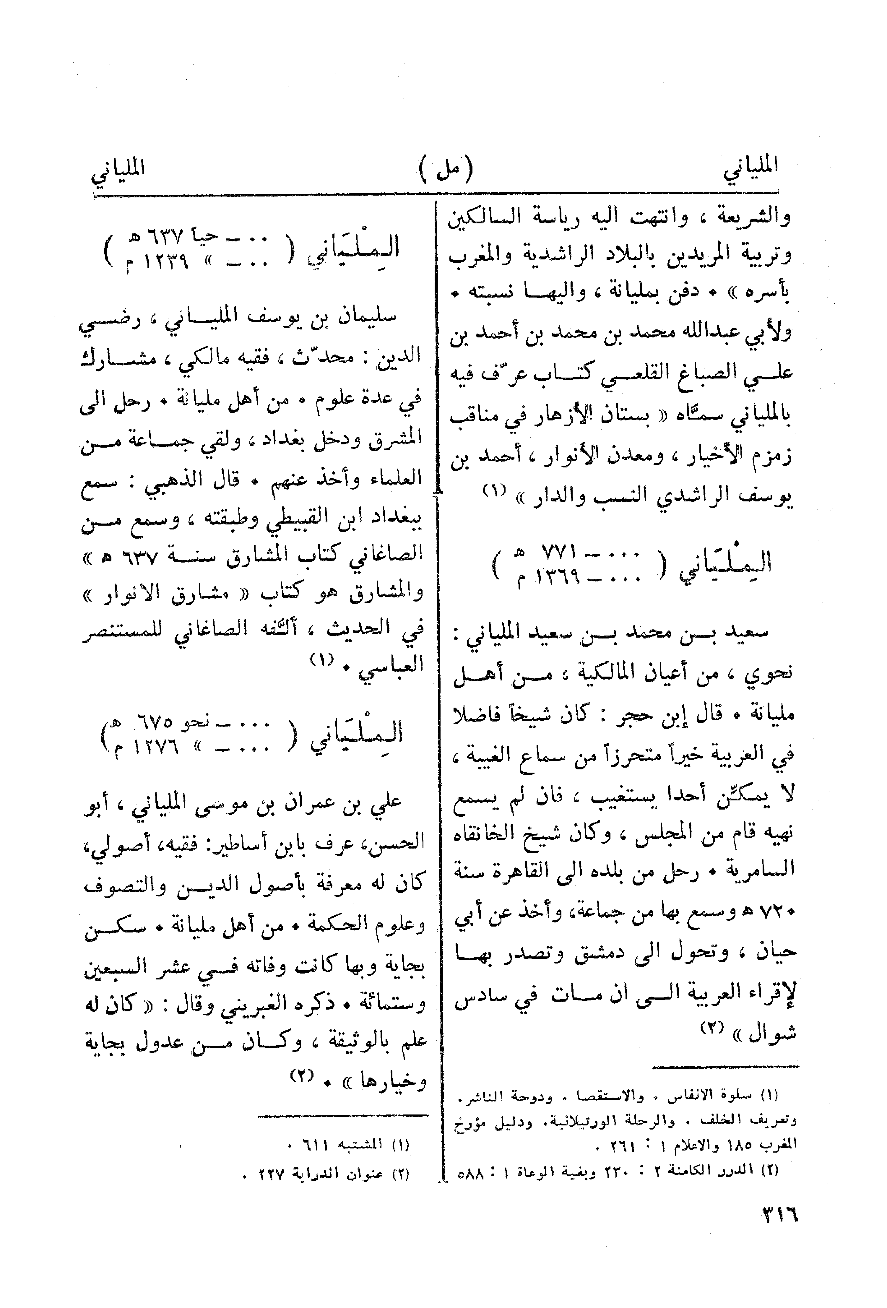 سليمان بن يوسف الملياني، رضي الدين: محدث، فقيه مالكي، مشارك في عدة علوم. من أهل مليانة. رحل الى المشرق ودخل بغداد، ولقي جماعة من العلماء وأخذ عنهم. قال الذهبي: سمع ببغداد ابن القبيطي وطبقته، وسمع من الصاغاني كتاب المشارق سنة 637هـ" والمشارق هو كتاب "مشارق الأنوار" في الحديث، ألفه الصاغاني للمنتصر العباسي. (¬1)