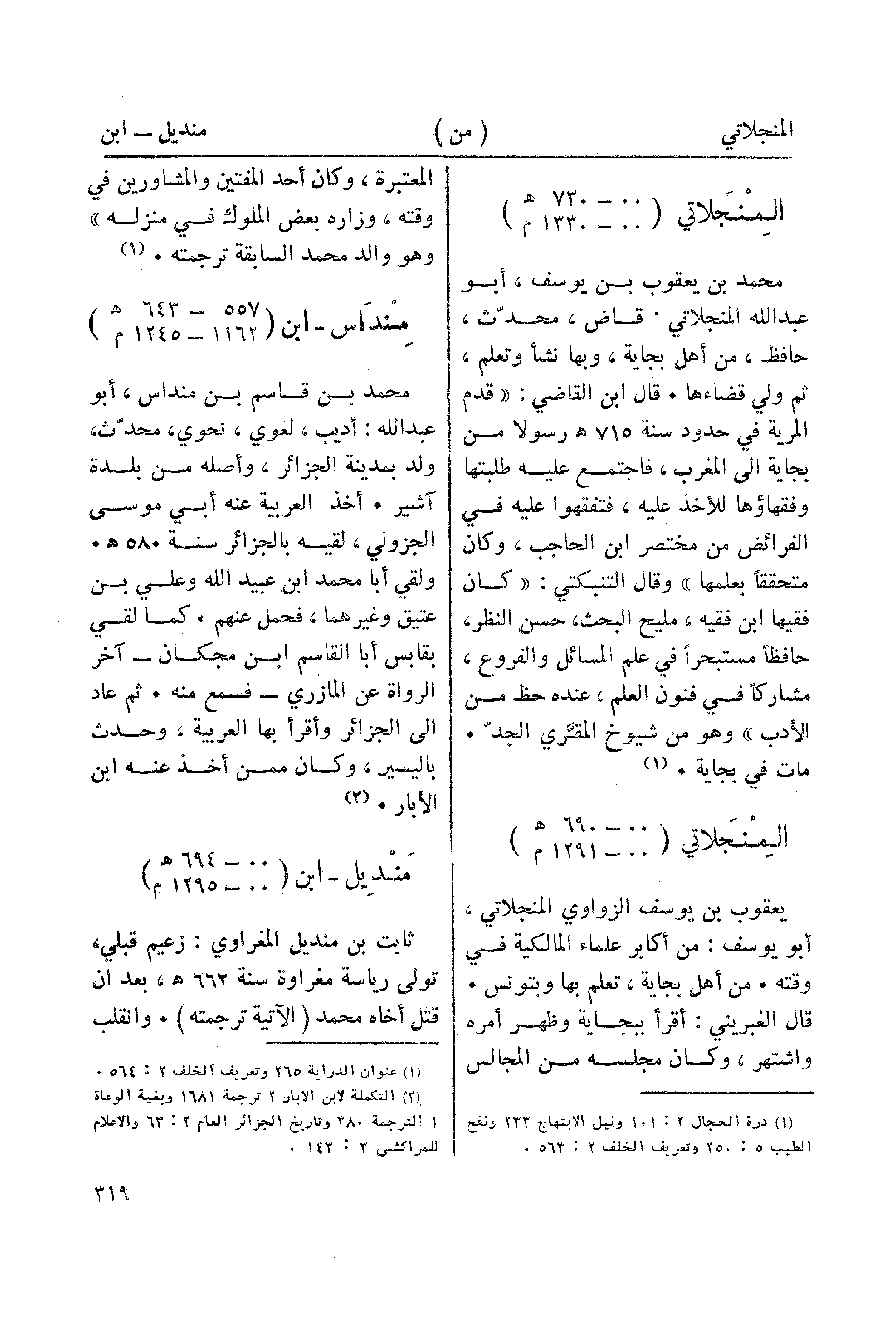 (¬2) التكملة لابن الابار 2 ترجمة 1681 وبغية الوعاة 1 الترجمة 380 وتاريخ الجزائر العام 2: 63 والاعلام للمراكشي 3: 143.