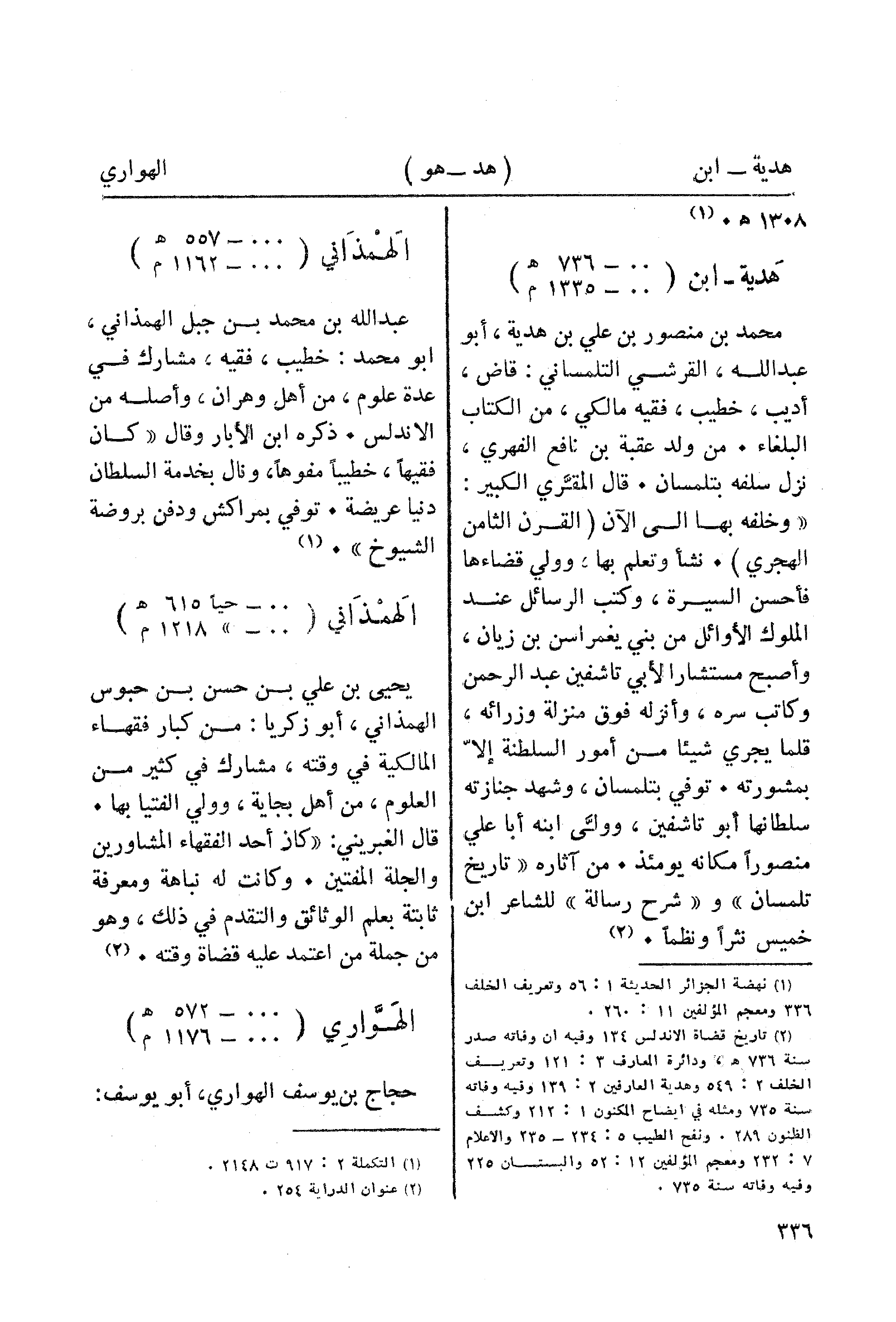 (¬2) تاريخ قضاة الاندلس 134 وفيه ان وفاته صدر سنة 736هـ، ودائرة المعارف 3: 121 وتعريف الخلف 2: 549 وهدية العارفين 2: 139 وفيه وفاته سنة 735 ومثله في ايضاح المكنون 1: 212 وكشف الظنون 289. ونفح الطيب 5: 234 - 235 والاعلام 7: 232 ومعجم المؤلفين 12: 52 والبستان 225 وفيه وفاته سنة 735.