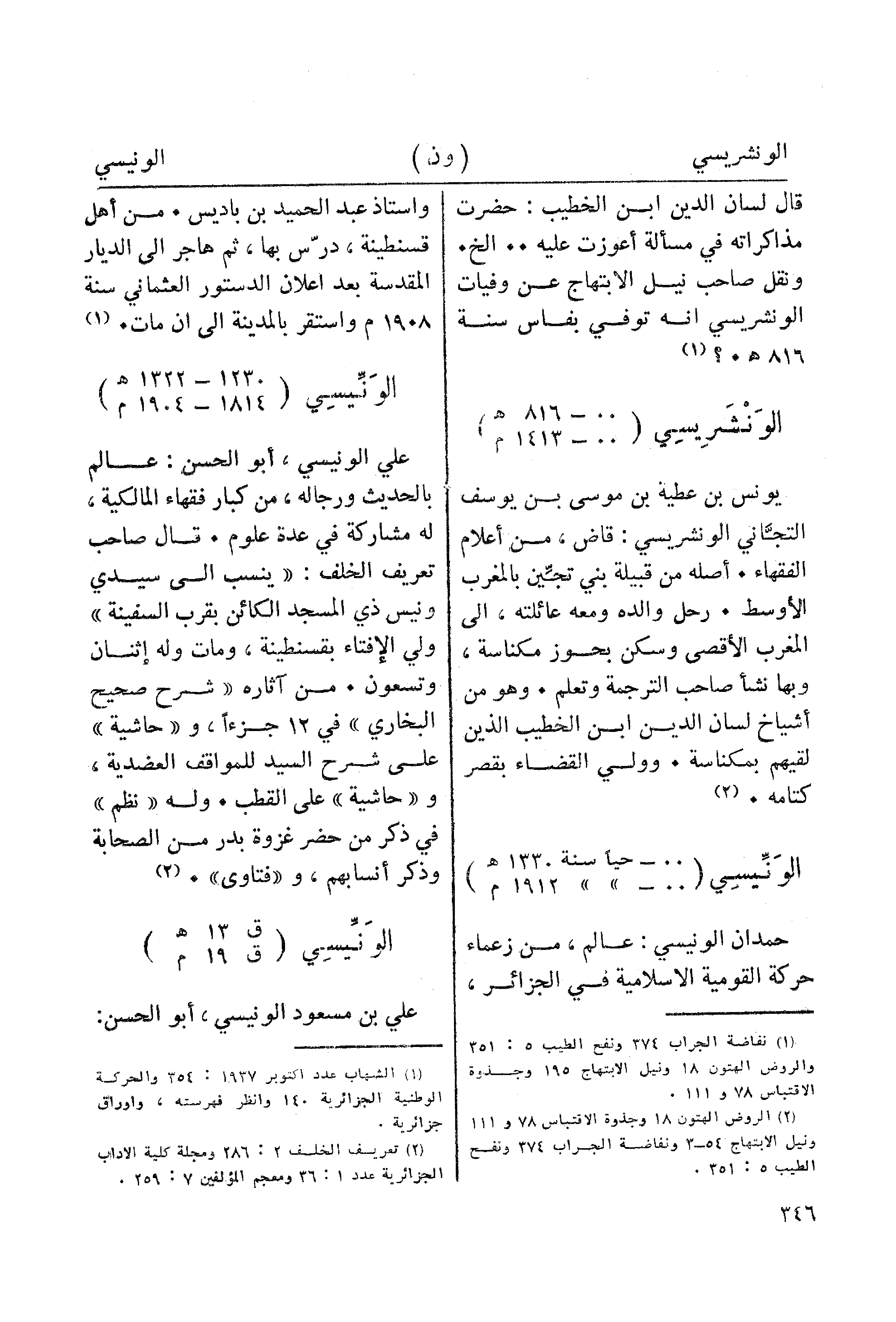 (¬2) تعريف الخلف2: 286 مجلة كلية الاداب الجزائرية عدد 1: 36 ومعجم المؤلفين 7: 259.