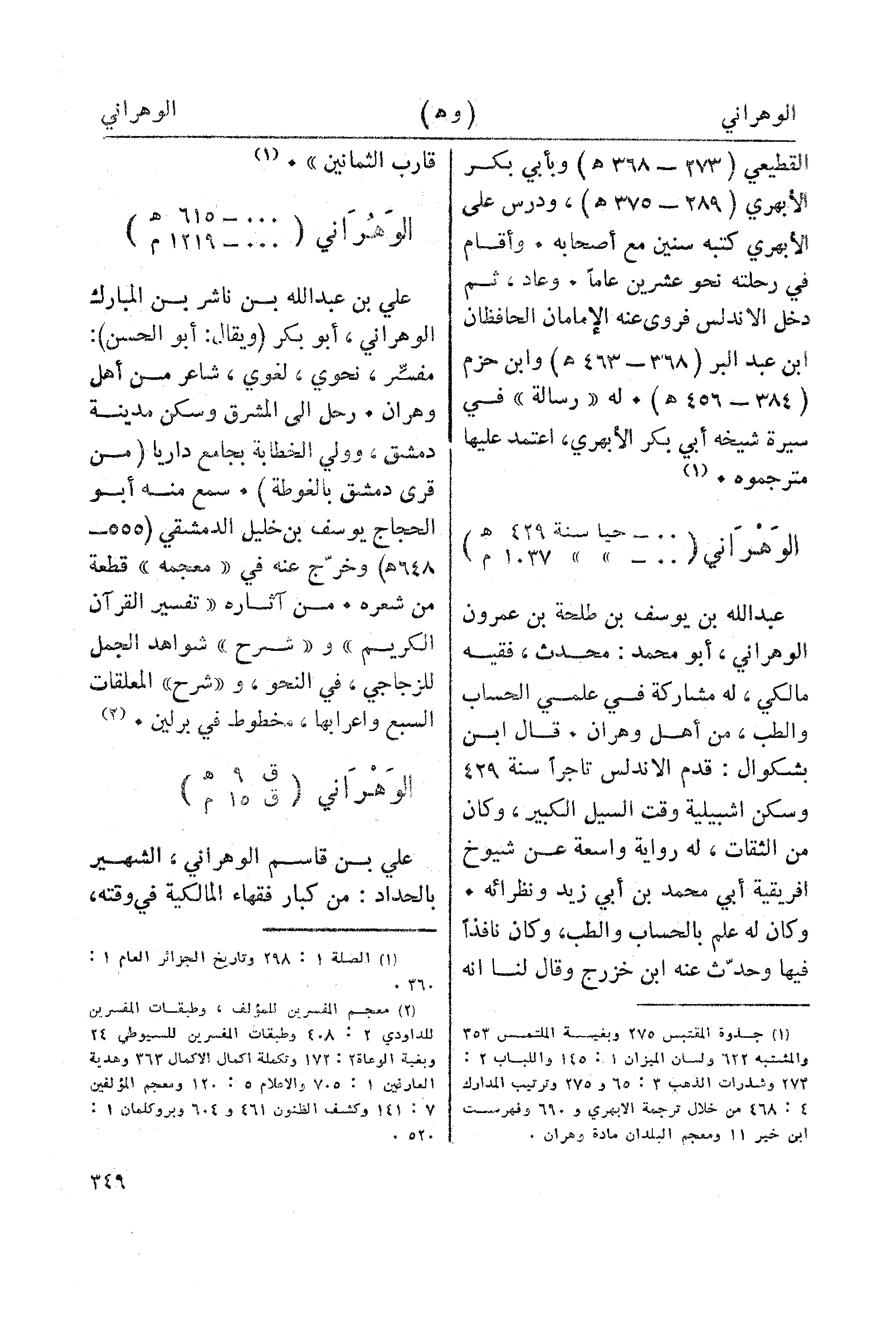 (¬1) جدوة المقتبس 275 وبغية الملتمس 353 والمشتبه 622 ولسان الميزان 1: 145 واللباب 2: 273 وشذرات الذهب 3: 65 و 275 وترتيب المدارك 4: 468 من خلال ترجمة الابهري و690 وفهرست ابن خير 11 ومعجم البلدان مادة وهران.