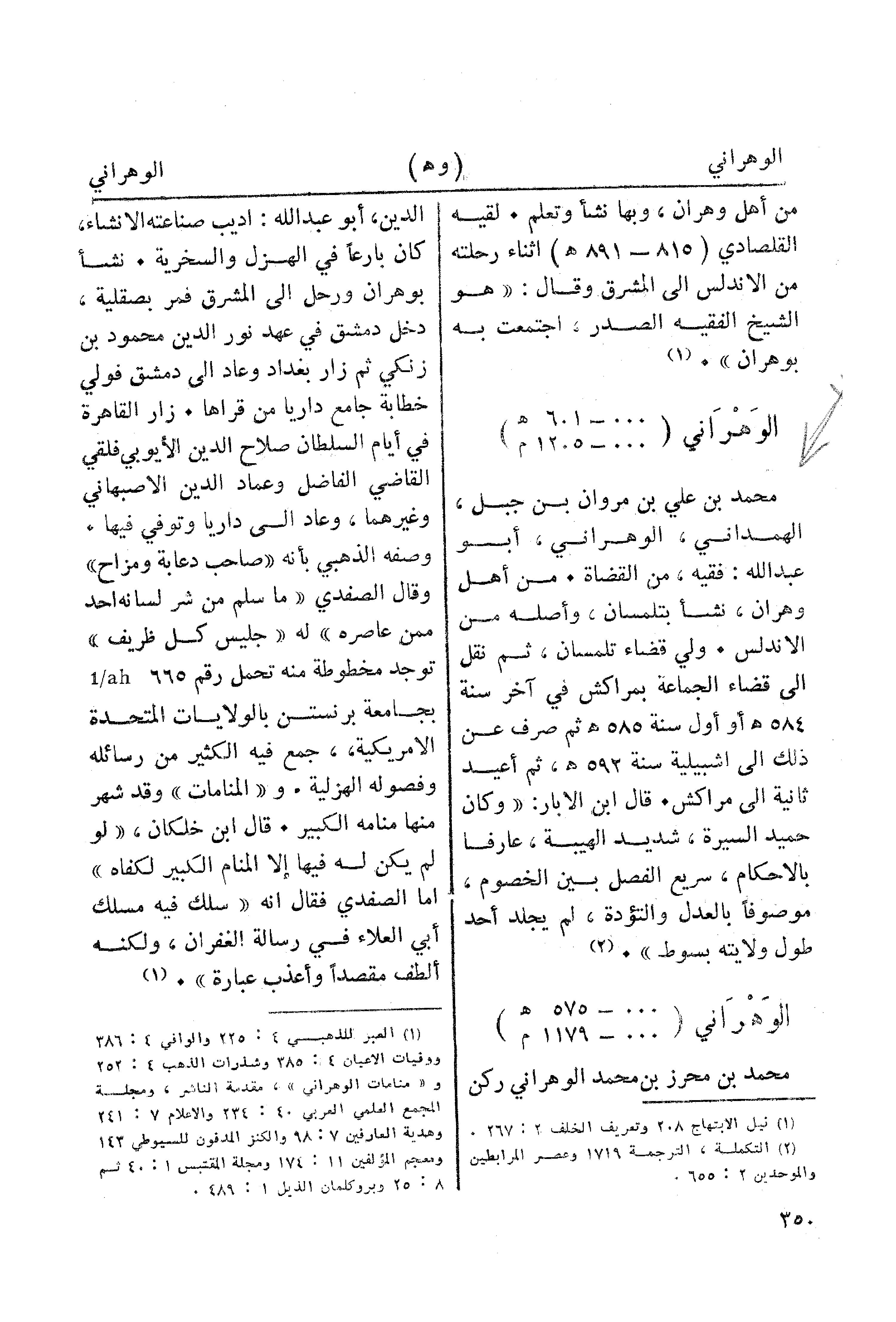 (¬1) العبر للذهبي 3: 225 والوافي 4: 386 ووفيات الاعيان 4: 385 وشذرات الذهب 4: 252 و"منامات الوهراني"، مقدمة الناشر، ومجلة المجمع العلمي العربى 40: 234 والاعلام 7: 241 وهدية العارفين 7: 98 والكنز المدفون للسيوطى 143 ومعجم المؤلفين 11: 174 ومجلة المقتبس 1: 40 ثم 8: 25 وبروكلمان الذيل 1: 489.