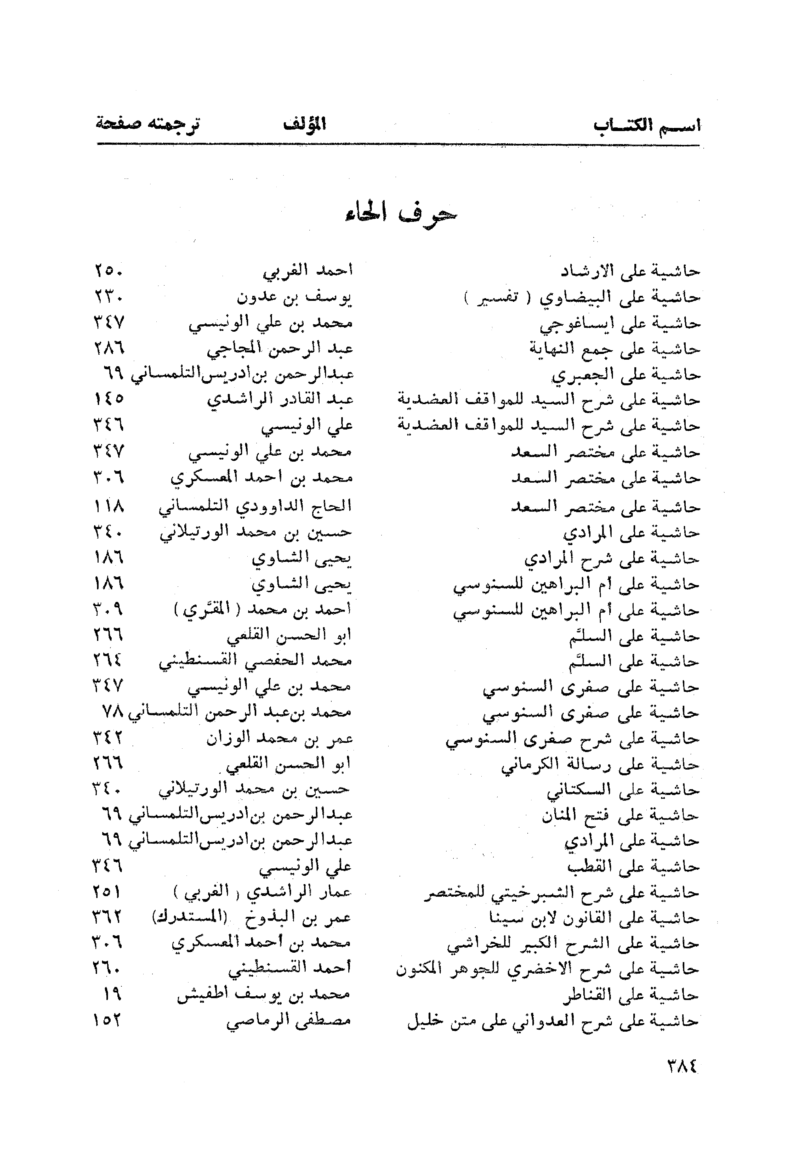 حاشية على المرادي .......... حسين بن محمد الورتيلاني .......... 340