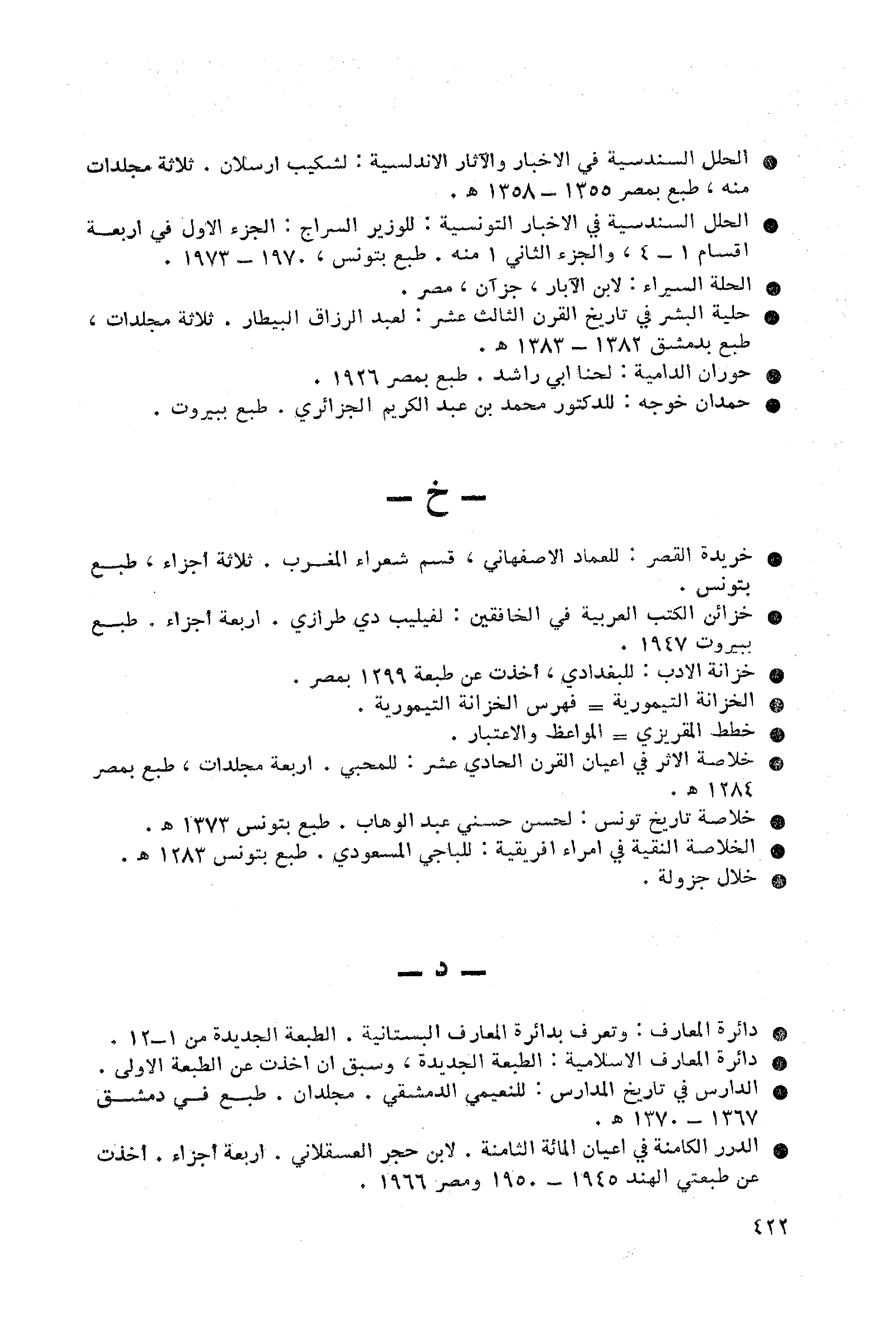 • خزائن الكتب العربية في الخافقين: لفيليب دي طرازي. أربعة أجزاء. طبع ببيروت 1947.