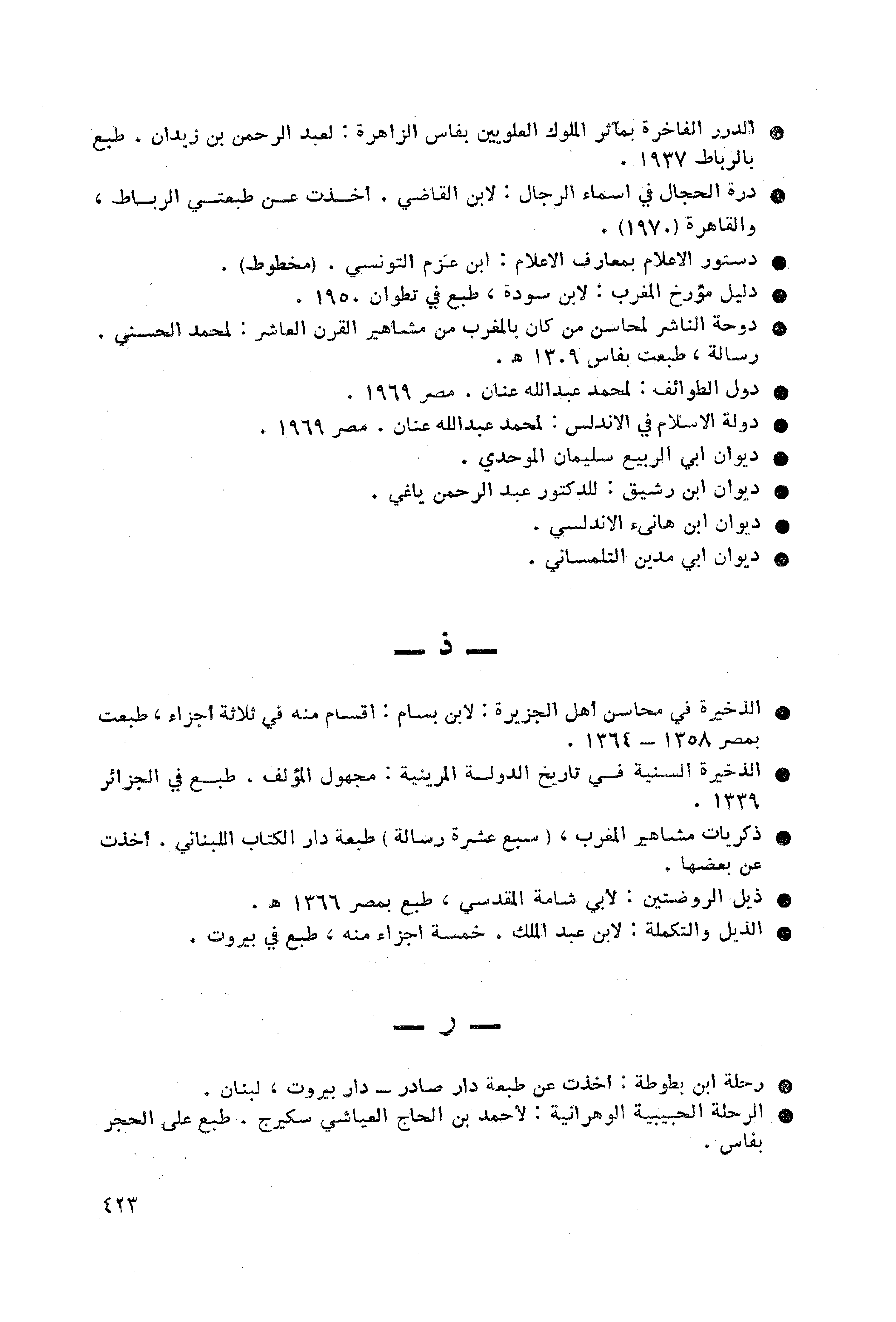 • دليل مؤرخ المغرب: لابن سودة، طبع في تطوان 1950.