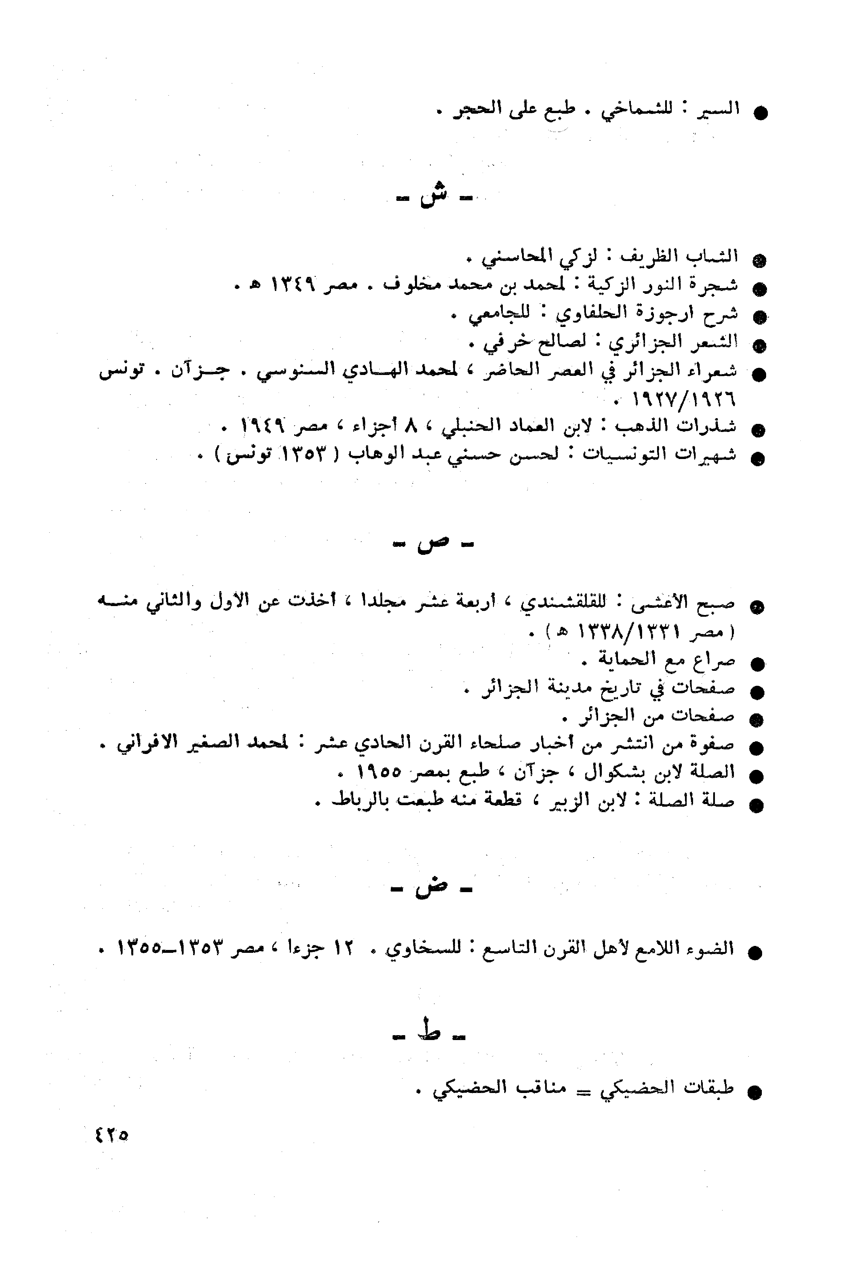 • شعراء الجزائر في العمر الحاضر، لمحمد الهادي السنوسي. جزآن. تونس 1926/ 1927.