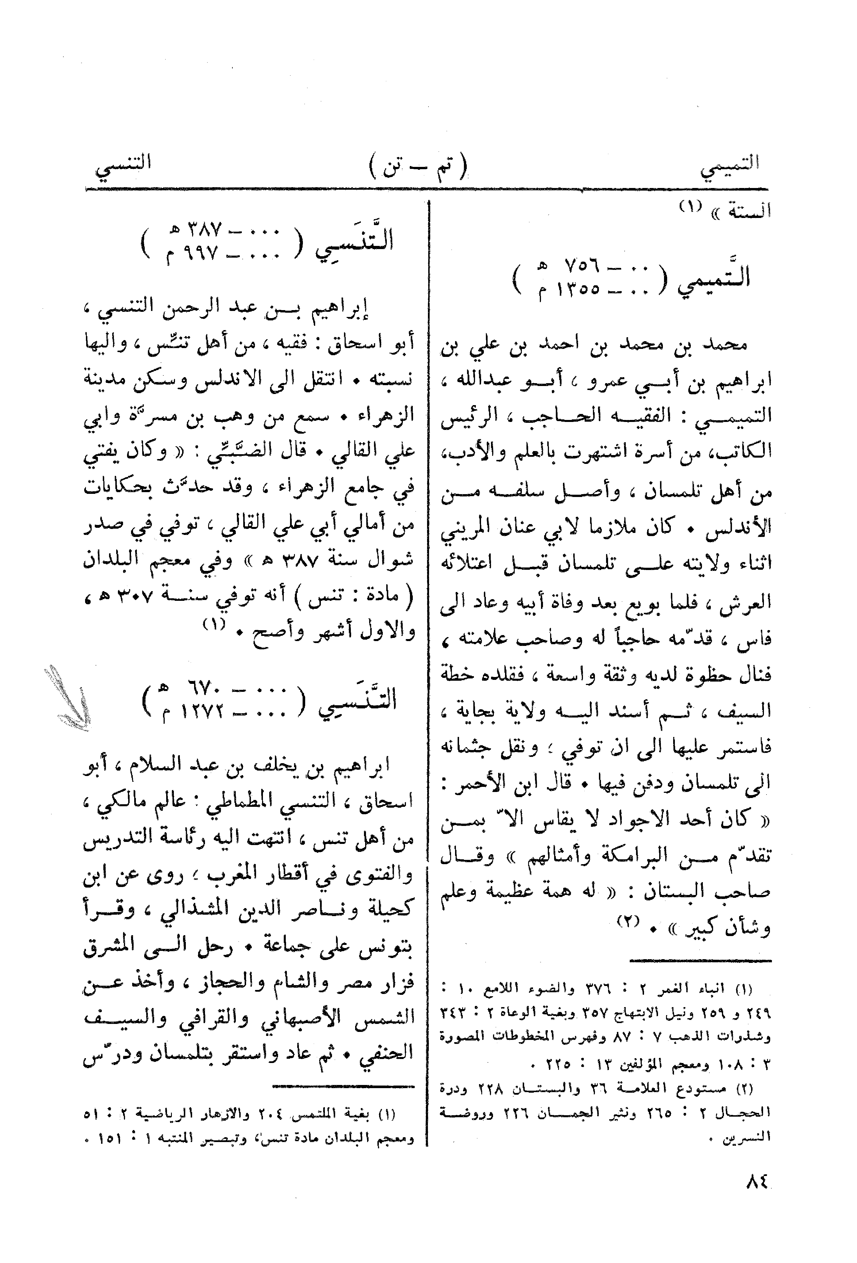 (¬1) بغية الملتمس 204 والازهار الرياضية 3: 51 ومعجم البلدان مادة تنس، وتبصير المنتبه 1: 151.