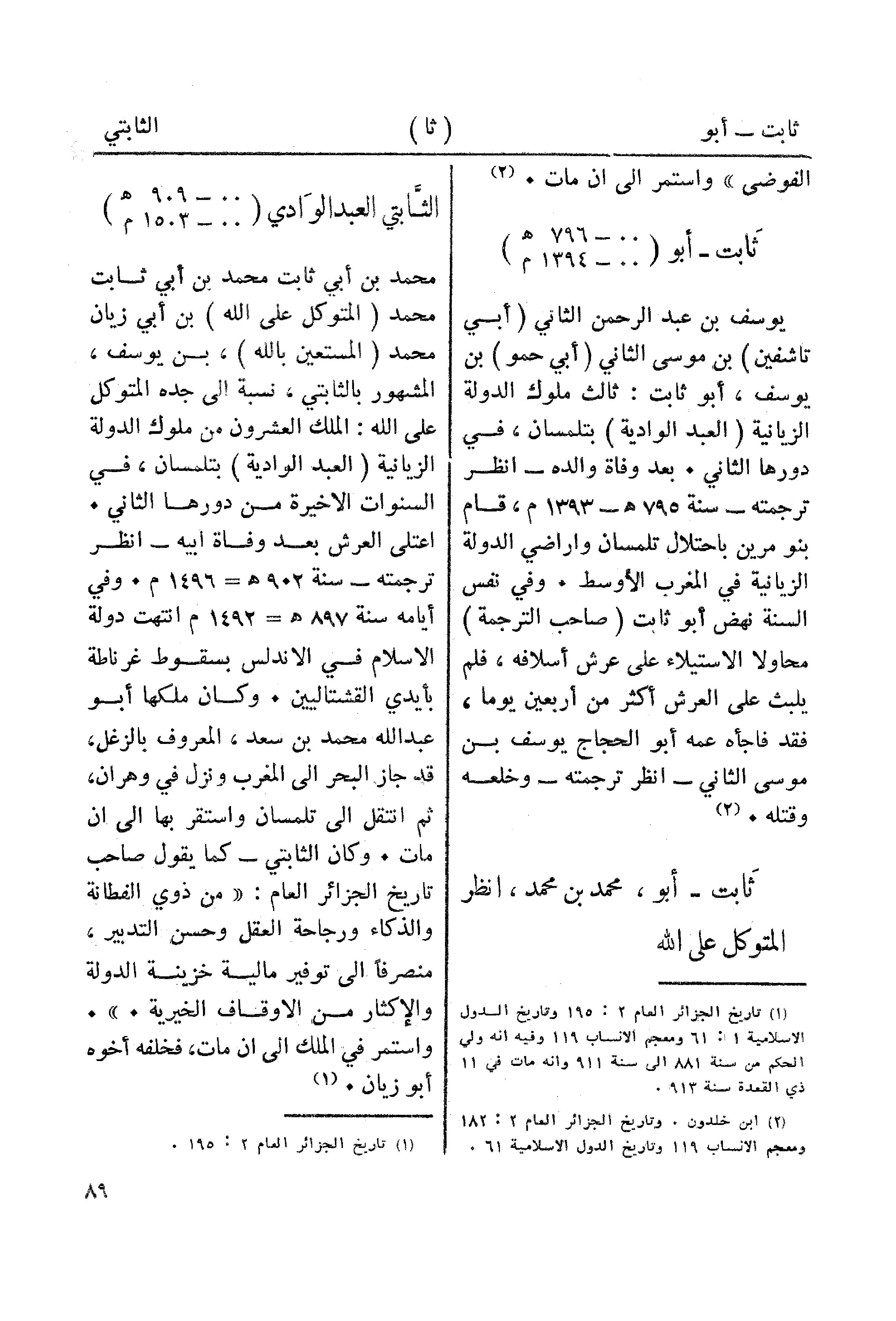 (¬1) تاريخ الجزائر العام 2: 195 وتاريخ الدول الاسلامية 1: 61 ومعجم الانساب 119 وفيه انه ولى الحكم من سنة 881 الى سنة 611 وانه مات في 11 ذي القمدة سنة 913.