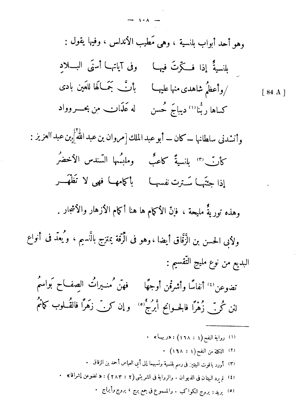 قال الوزير أبو إسحاق: سبب هذه القطعة أنى ذهبت يوماً أريد باب السمارين بشاطبة، ابتغاء الفرجة على جرية ذلك الماء بتلك الساقية، وذلك سنة ثمانين وأربعمائة، وإذا الفقيه أبو عمران بن أبي تليد رحمه الله قد سبقني إلى ذلك، فألفيته جالسا على مصطبة كانت هنالك مبنية لهذا الشأن، فسلمت عليه، وجلست إليه متأنسا به وبتلك الحال، فأنشد أثناء ما تناشدناه قول ابن رشيق رحمه الله: