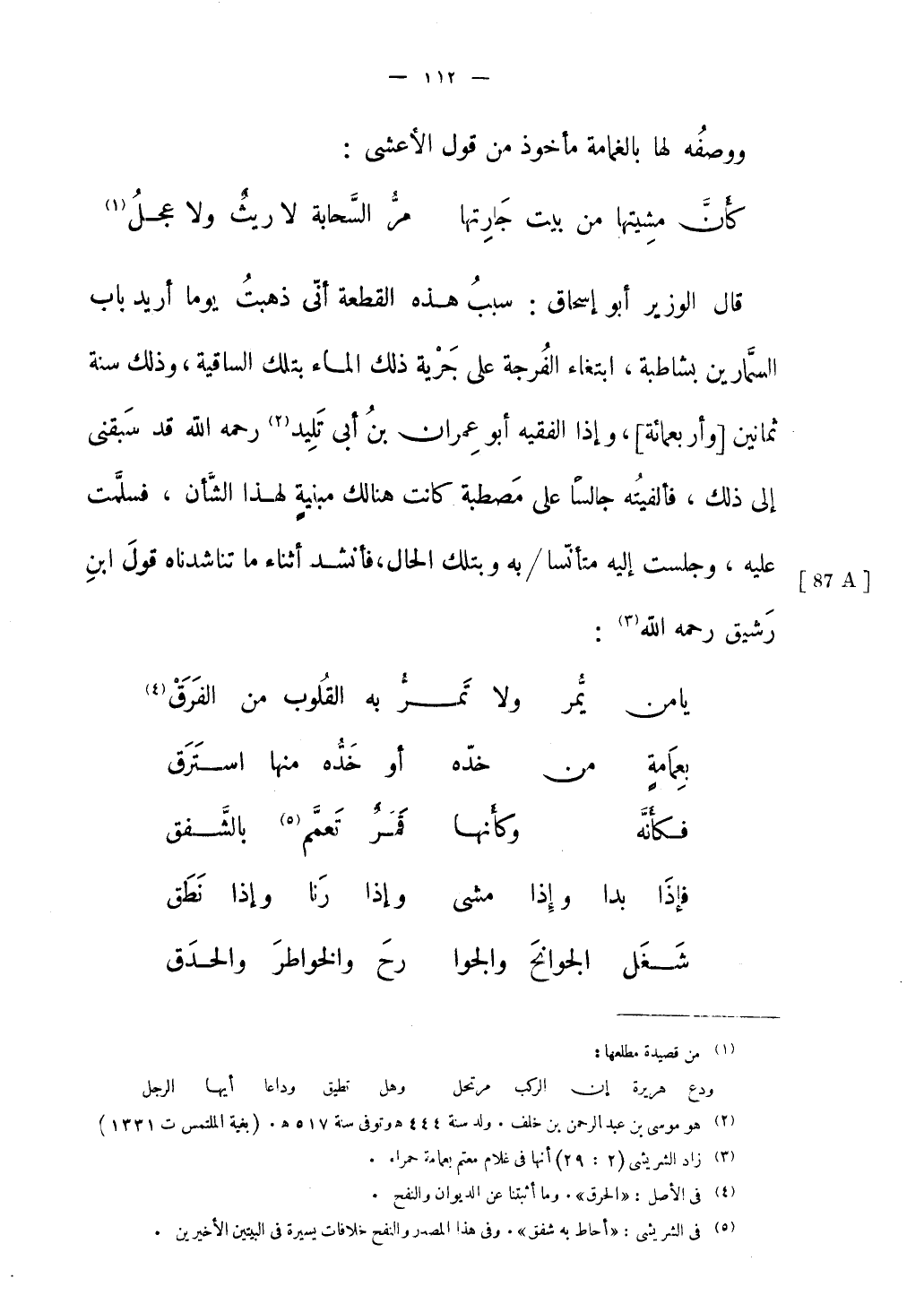 حيَّا بِها ونَسيمُها كَنسيمِه ... فشَرِبْتُها من كفّه في وُدِه