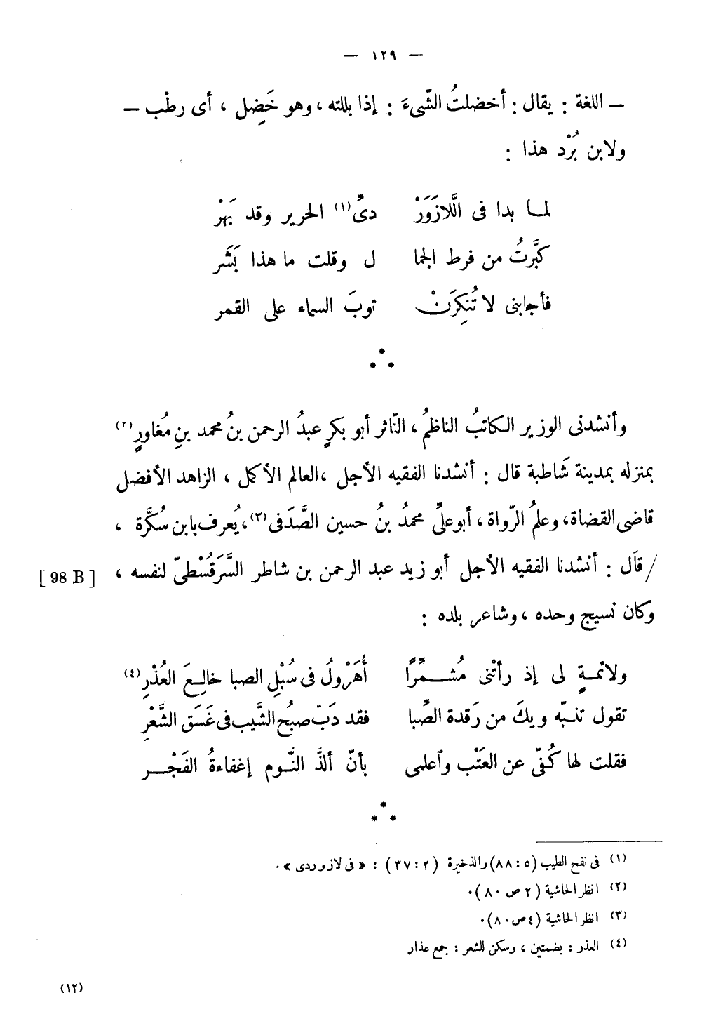 ومن قدماء شعراء صاحب الأندلس، أبي المطرف عبد الرحمن بن الحكم ابن هشام بن عبد الرحمن بن معاوية بن هشام بن عبد الملك بن مروان: