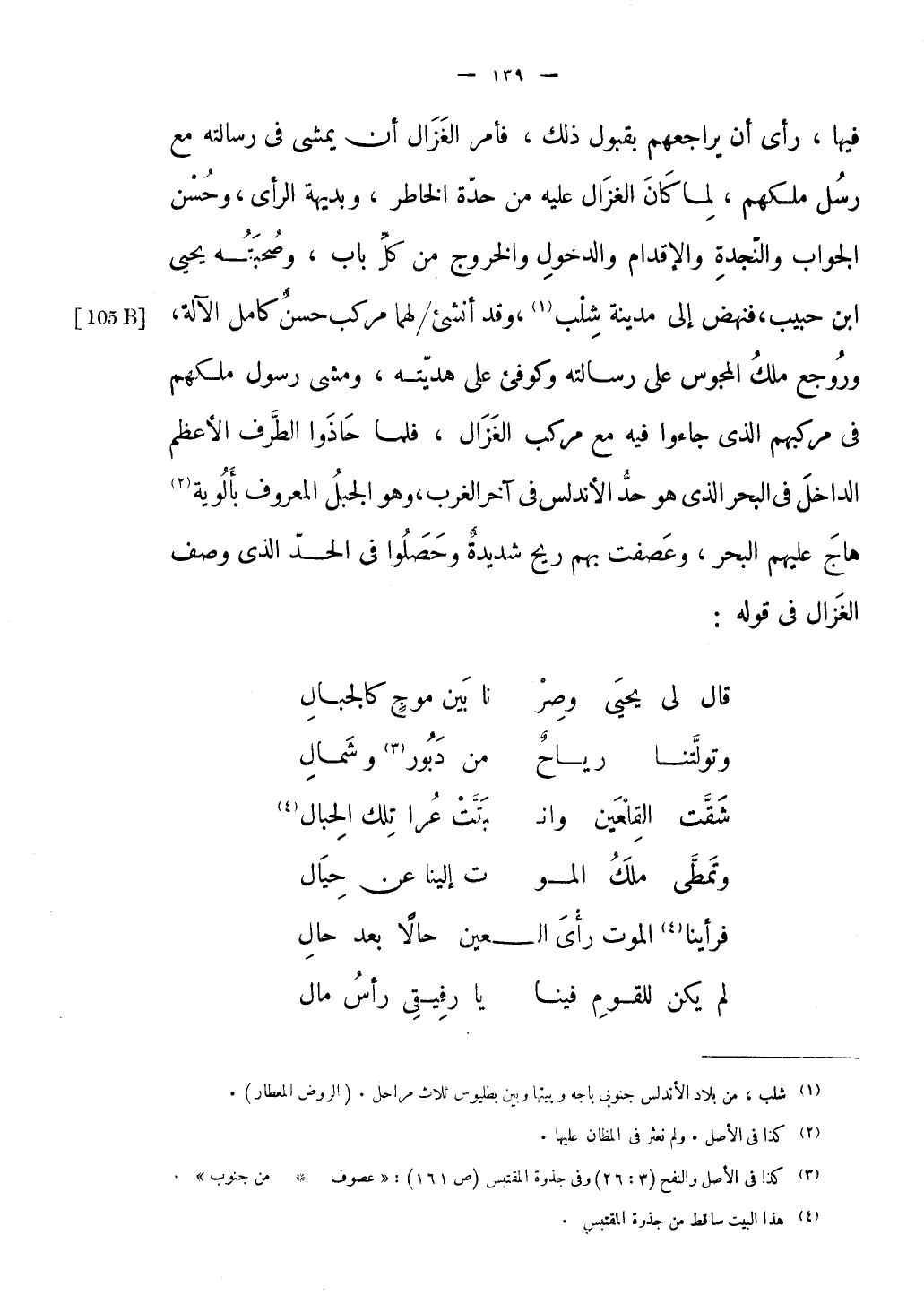 طيب، حتى شاع خبرها معه، وأنكره أصحابه، وحذر منه الغزال، فحذر وأغب زيارتها. فباحثته عن ذلك، فقال لها ما حذر منه. فضحكت، وقالت له: ليس في ديننا نحن هذا، ولا عندنا غيرة، ولا نساؤنا مع رجالنا إلا باختيارهن، تقيم المرآة معه ما أحبت، وتفارقه إذا كرهت. وأما عادة المجوس قبل أن يصل إليهم دين رومة، فألا يمتنع أحد من النساء على أحد من الرجال، إلا أن يصحب الشريفة الوضيع، فتعير بذلك، ويحجره عليها أهلها فلما سمع ذلك الغزال من قولها أنس إليه وعاد إلى استرساله.