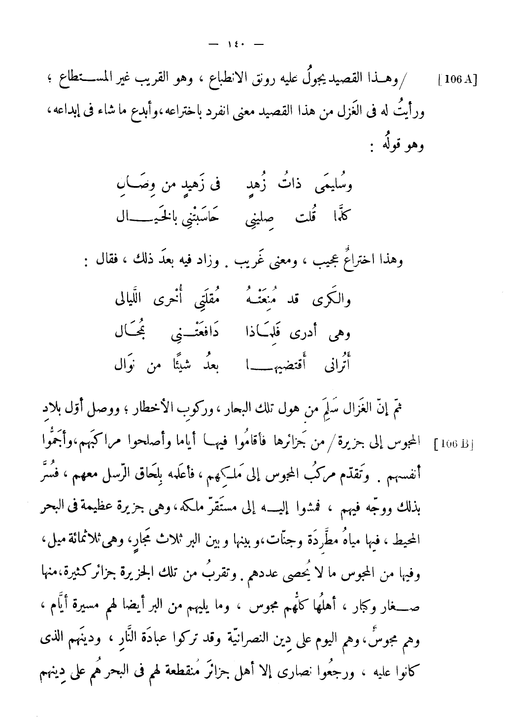 إنّي تعلّقتُ مجُوسيَّةً ... تأبَى لِشمس الحُسن أن تَغْرُبا