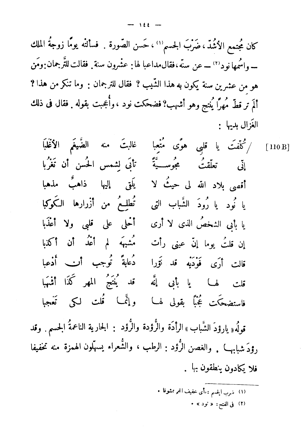 قليلَ هُجوعِ العَينِ. إلاّ تَعِلَّةً ... على وجَلٍ منِّي ومن نُظَرائي