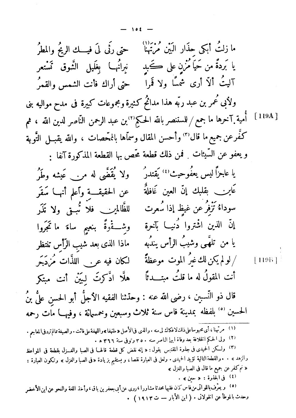 كان رجل من أهل طليطلة ذا محل شريف، ومكان عال منيف؛ فنبا به الوطن، وخانه على معهوده الزمن؛ فأتى إلى قرطبة رث الحال، منبت الحبال؛ لا يملك