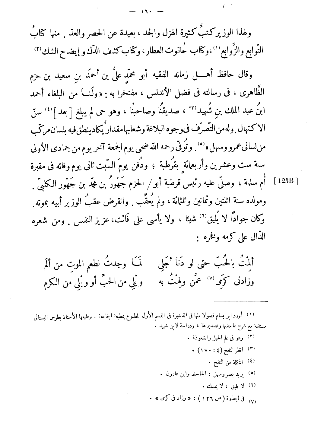 ومنهم شاعر قرطبة وزعيمها، ونخبة بني مخزوم وضميمها، ذو الوزارتين: