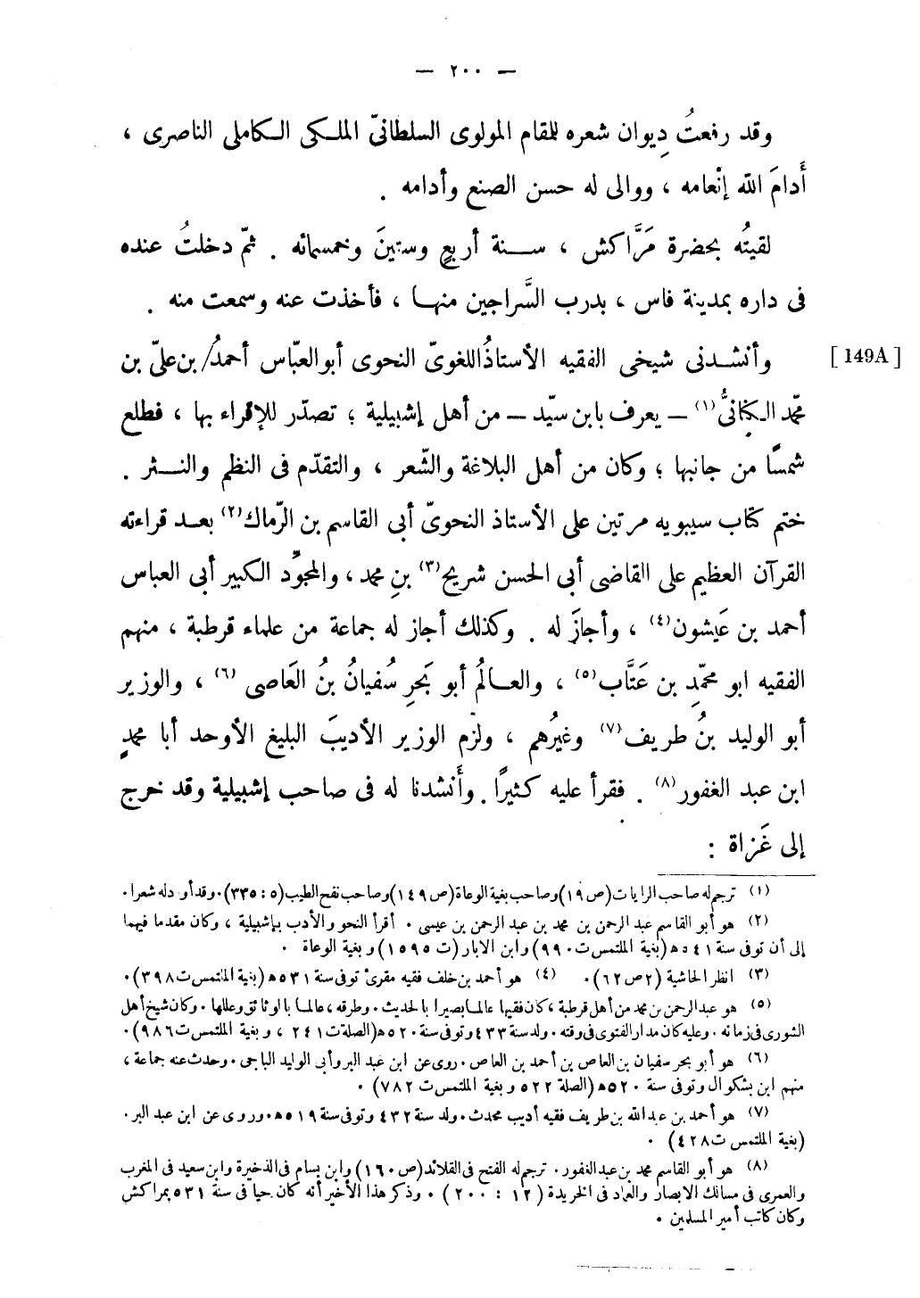 والذي انفرد شيخنا به وانقادت لتخيله طباعه، وأصارت النبهاء خوله وأتباعه: الموشحات، وهي زبدة الشعر وخلاصة جوهره وصفوته. وهي من الفنون التي أغربت بها أهل المغرب على أهل المشرق. وظهروا فيها كالشمس الطالعة والضياء المشرق، فمن ذلك قوله: