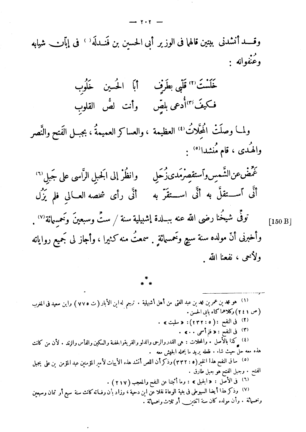 وكان شيخنا الوزير أبو بكر - رحمه الله - بمكان من اللغة مكين، ومورد من الطلب عذب معين. كان يحفظ شعر ذي الرمة، وهو ثلث لغة العرب، مع الإشراف على جميع أقوال أهل الطب، والمنزلة العليا عند أصحاب المغرب مع سمو النسب، وكثرة الأموال والنشب
